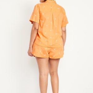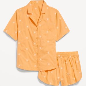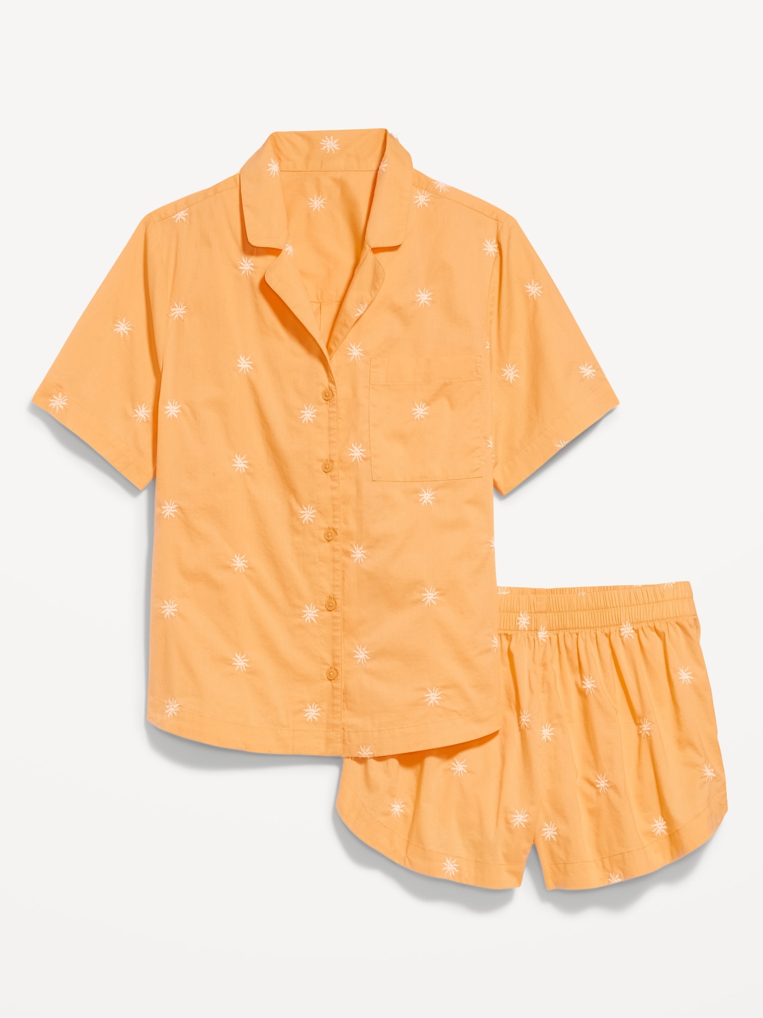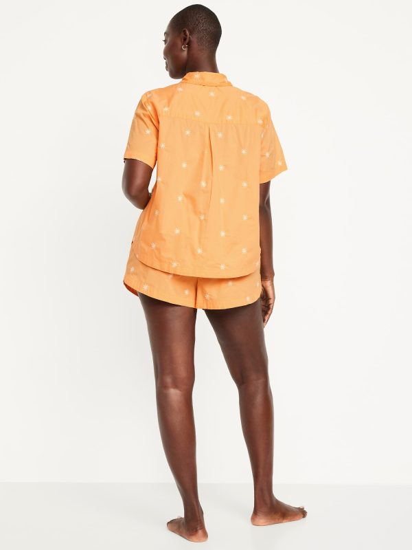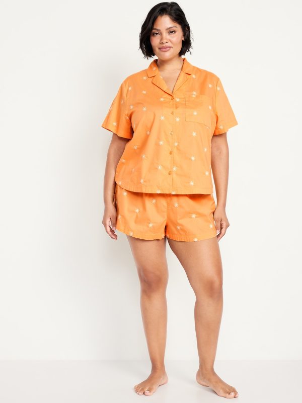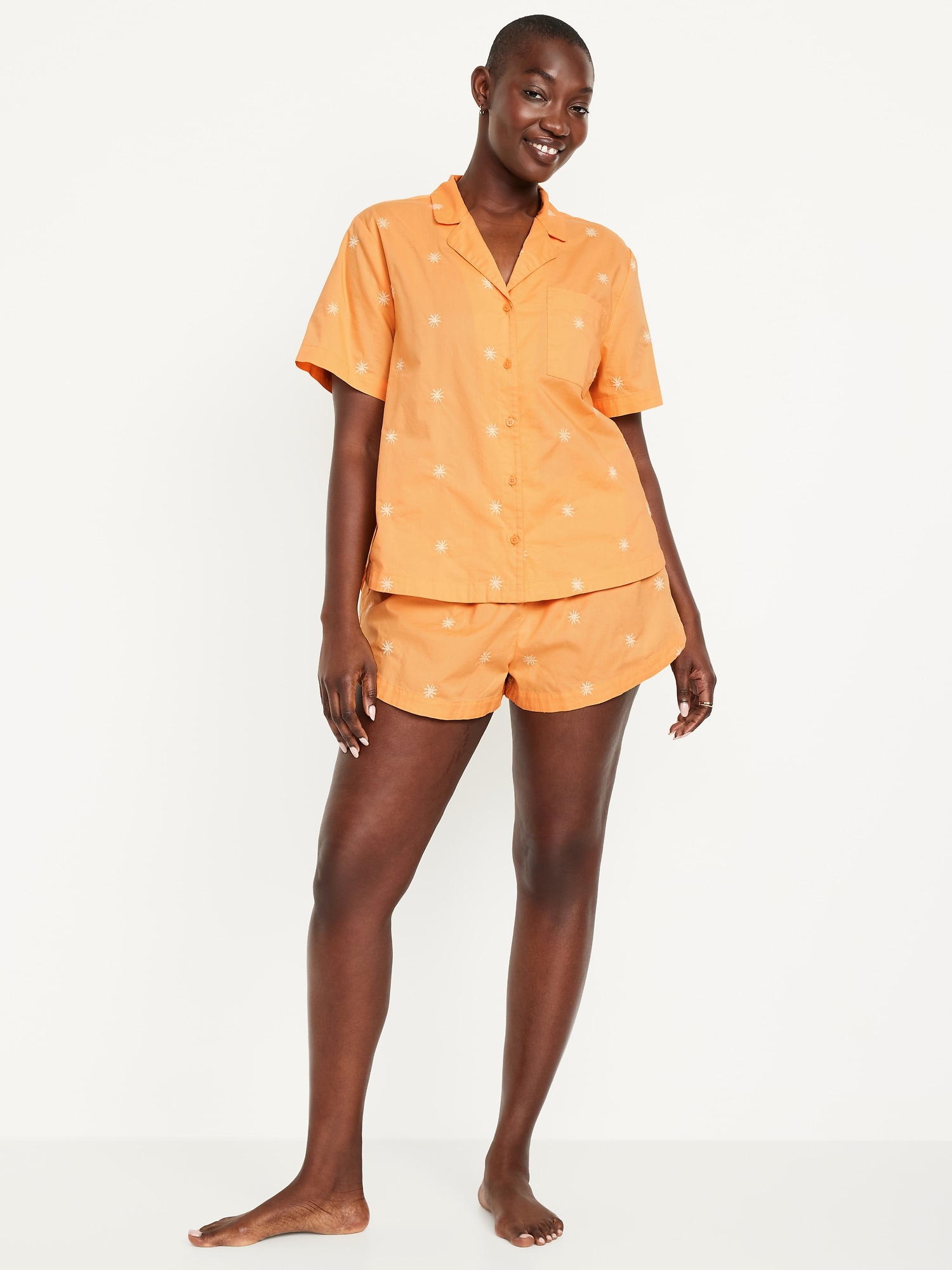 Poplin Pajama Short Set: Crisp, breathable cotton that’s classic for a reason.set includes sleep shirt and matching boxer shorts, notched collar, short sleeves, button front, patch chest pocket, elastic-waist shorts, #707439