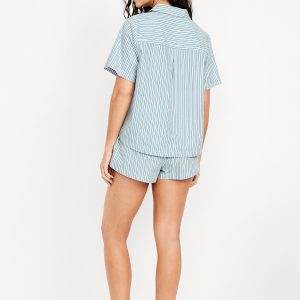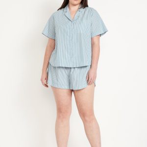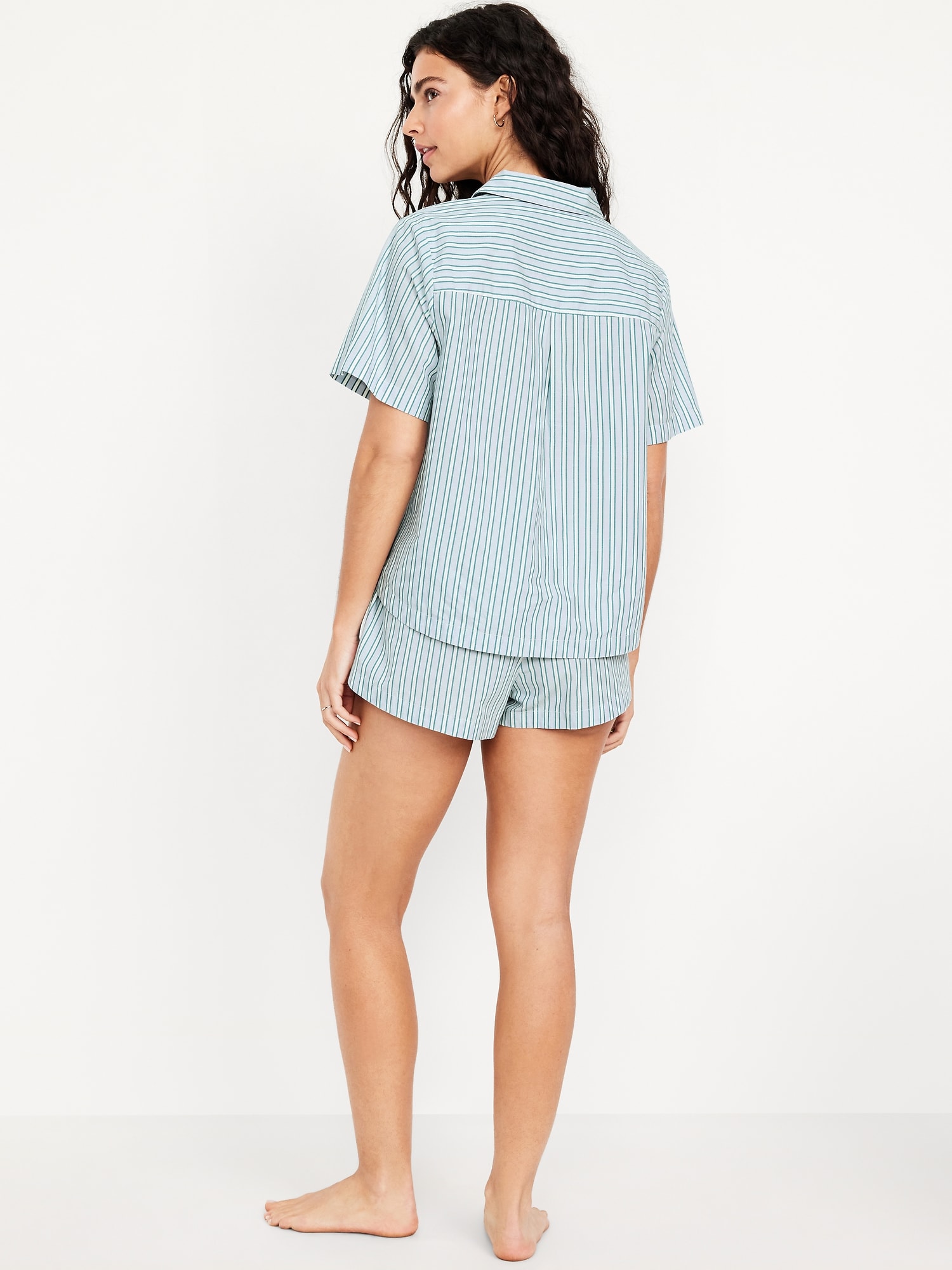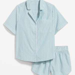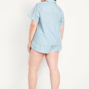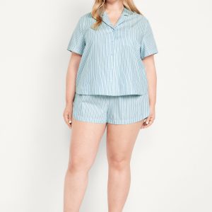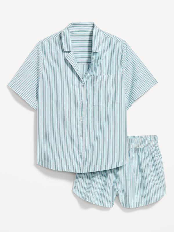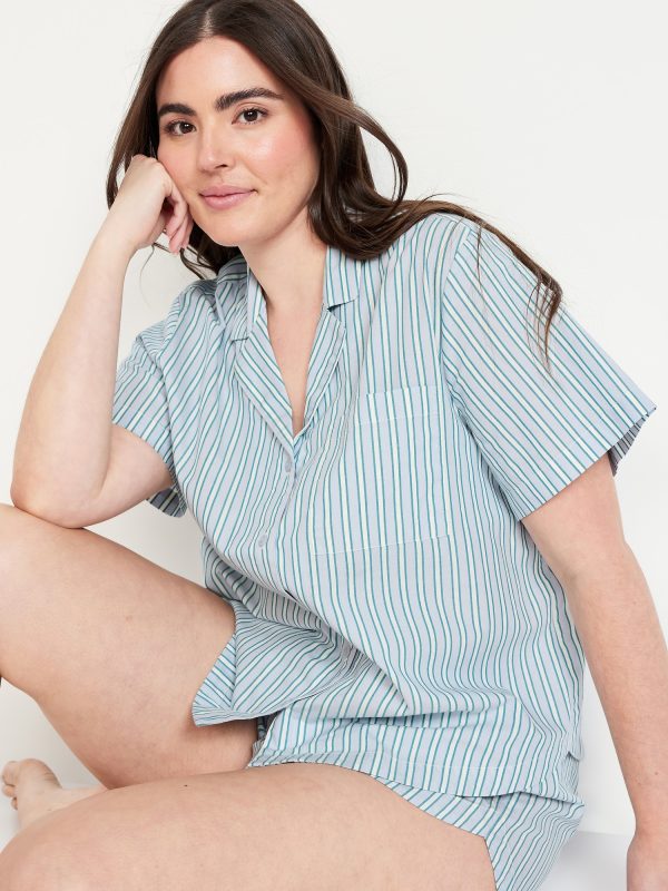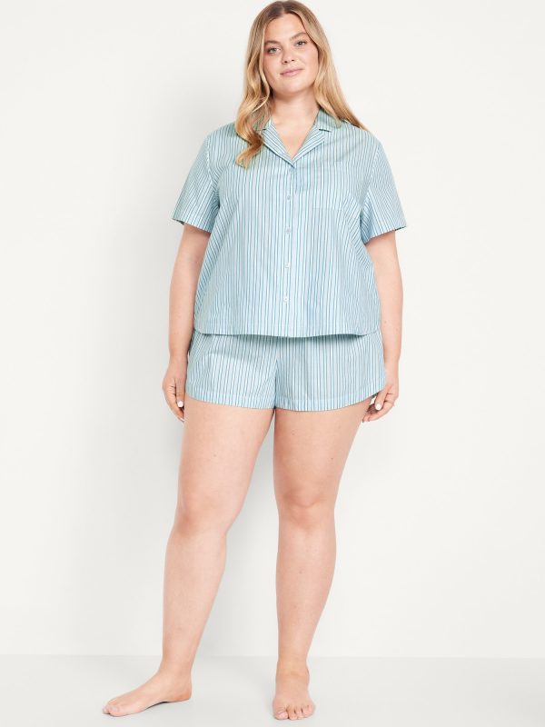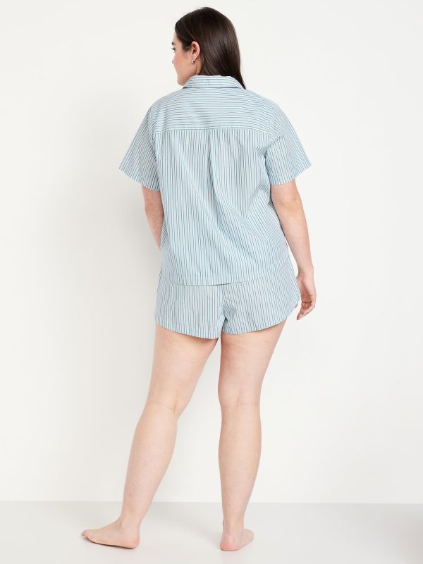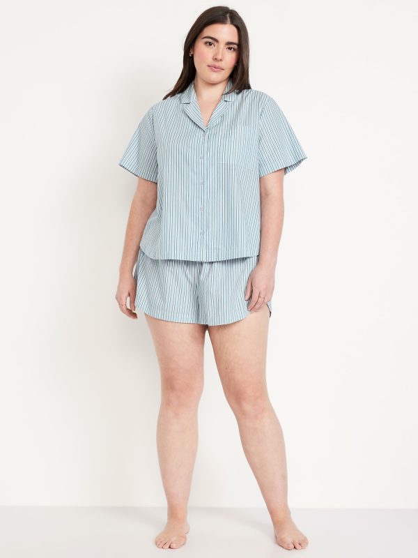 Poplin Pajama Short Set: Crisp, breathable cotton that’s classic for a reason.set includes sleep shirt and matching boxer shorts, notched collar, short sleeves, button front, patch chest pocket, elastic-waist shorts, #707439