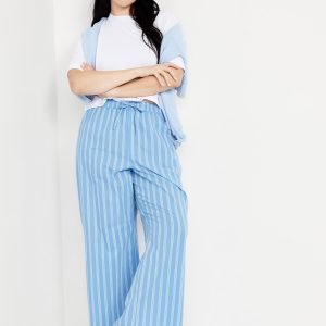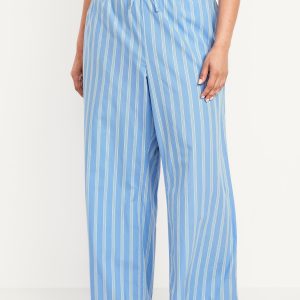 Poplin Wide-Leg Pajama Pants: Crisp, breathable cotton that’s classic for a reason.elastic-drawstring waistband, on-seam side pockets, plaid print, #798467