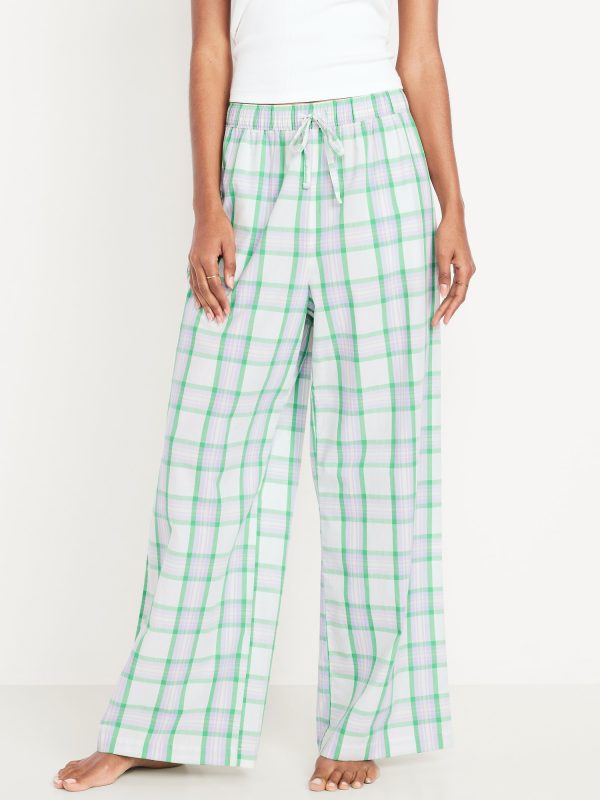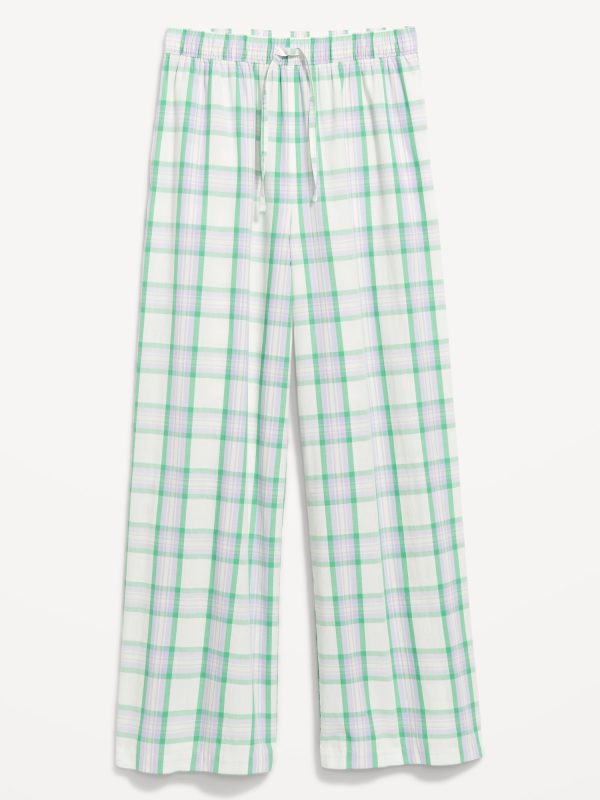 Poplin Wide-Leg Pajama Pants: Crisp, breathable cotton that’s classic for a reason.elastic-drawstring waistband, on-seam side pockets, plaid print, #798467