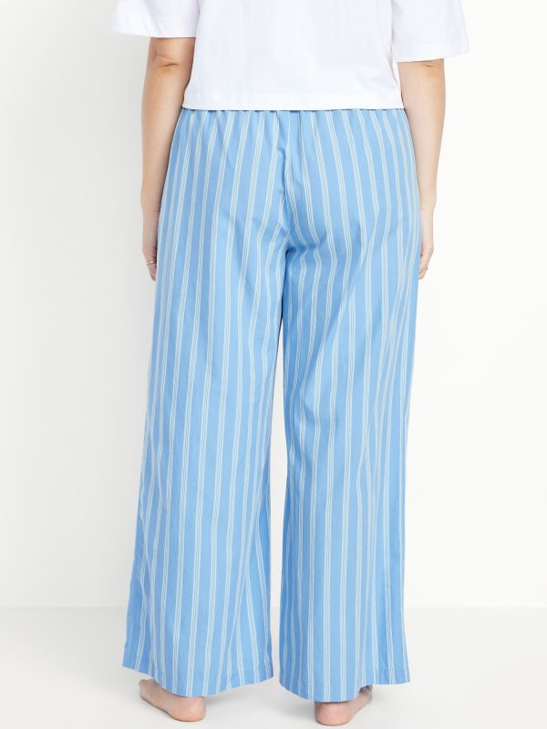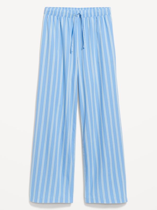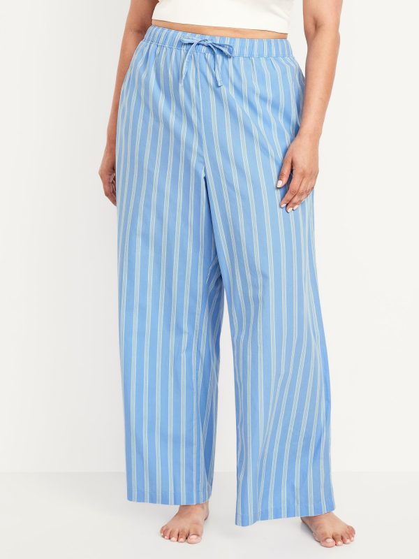 Poplin Wide-Leg Pajama Pants: Crisp, breathable cotton that’s classic for a reason.elastic-drawstring waistband, on-seam side pockets, striped print, #770007