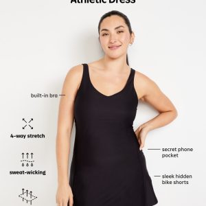 PowerSoft Athletic Dress: Featuring PowerSoft. Light compression meets a peachy-smooth, sweat-wicking fabric.v-neck, wide straps, shelf bra, go-dry wicks moisture, breathable, mini length, #662642