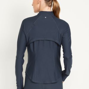 PowerSoft Full Zip: Featuring PowerSoft. Light compression meets a peachy-smooth, sweat-wicking fabric.mock neck, long sleeves, thumbhole cuffs, full-zip front, zip pockets, go-dry wicks moisture, #724598