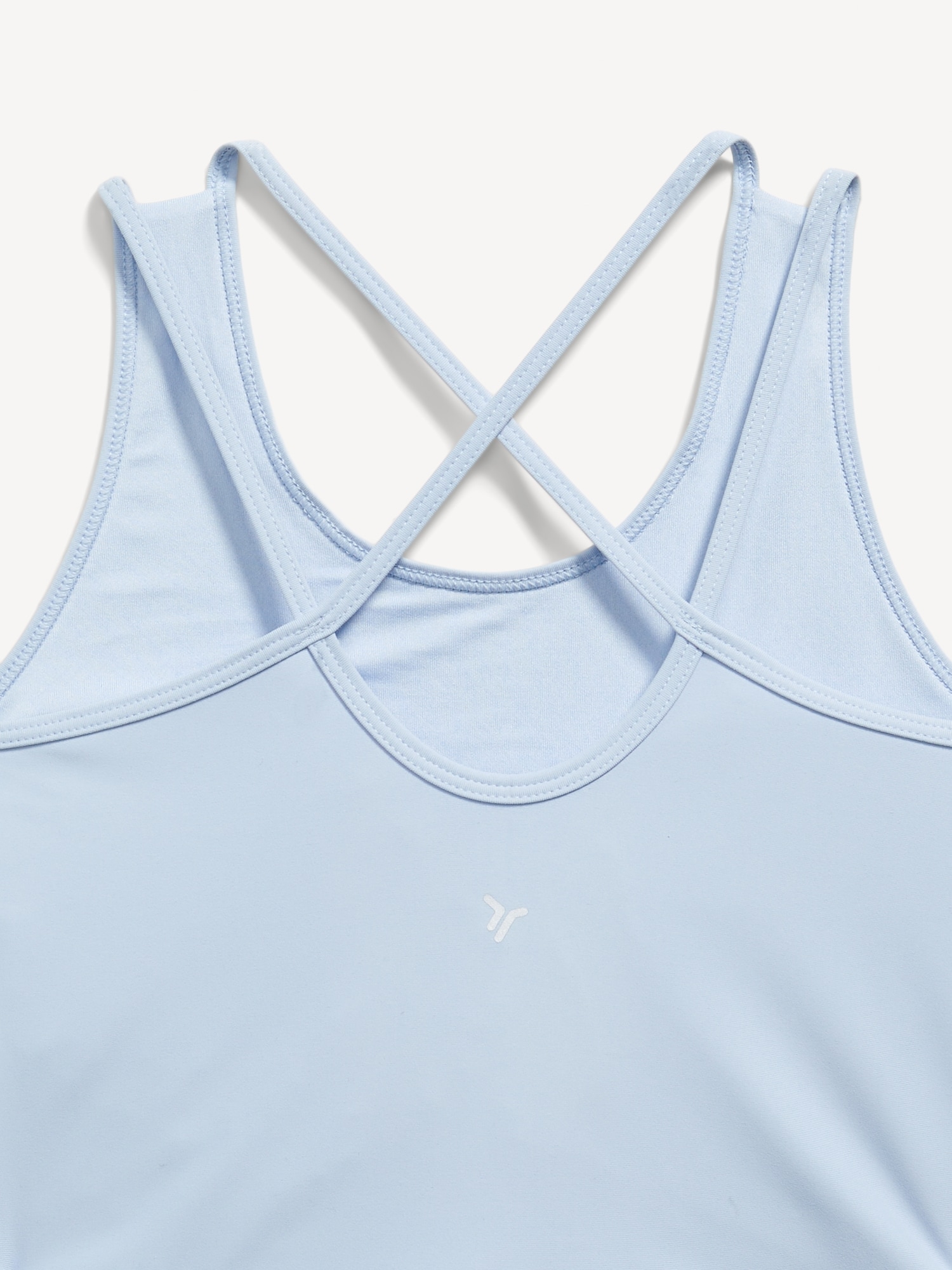 PowerSoft Sleeveless Tutu Athletic Dress for Girls: built-in shorts, u neckline, wide shoulder straps, thin straps cross at back, seamed waist, flared tutu skirt, #762168