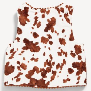 Printed Corduroy Vest for Baby: v neck, sleeveless, button loop closure, patch pockets at hem, scallop edge trim, #802423