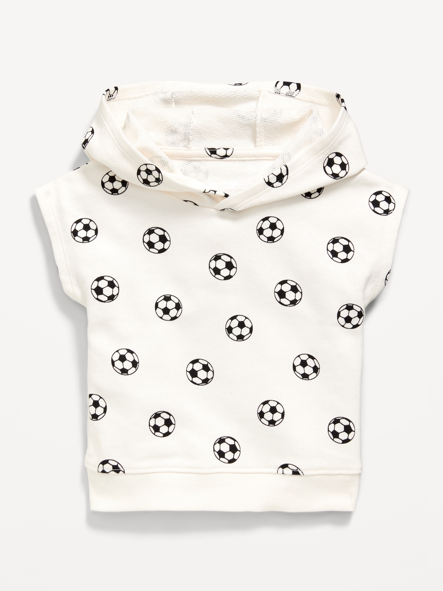 Printed Dolman-Sleeve French Terry Pullover Hoodie for Baby: built-in hood, dolman short sleeves, banded hem, all-over print or graphic, online exclusive, #762101