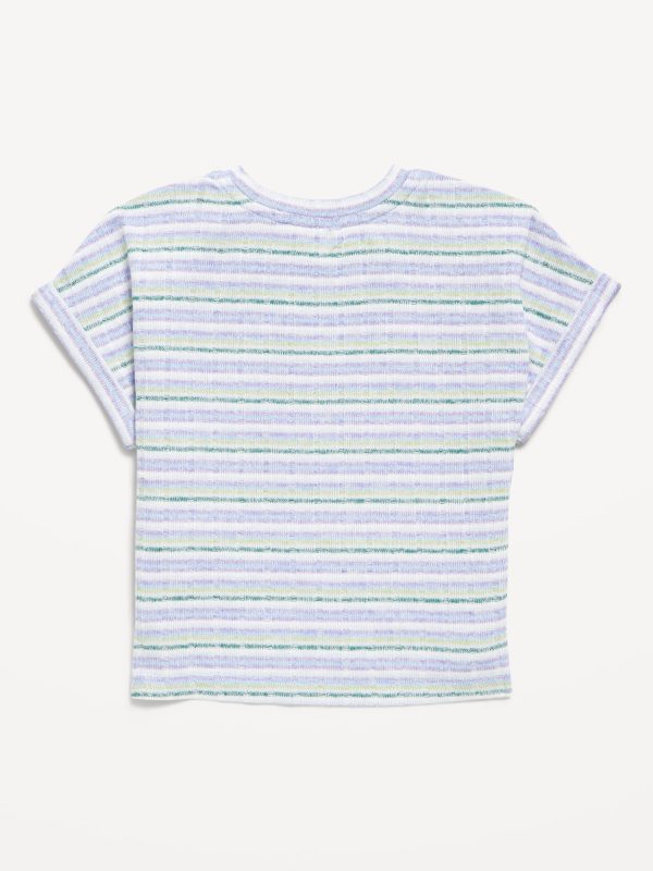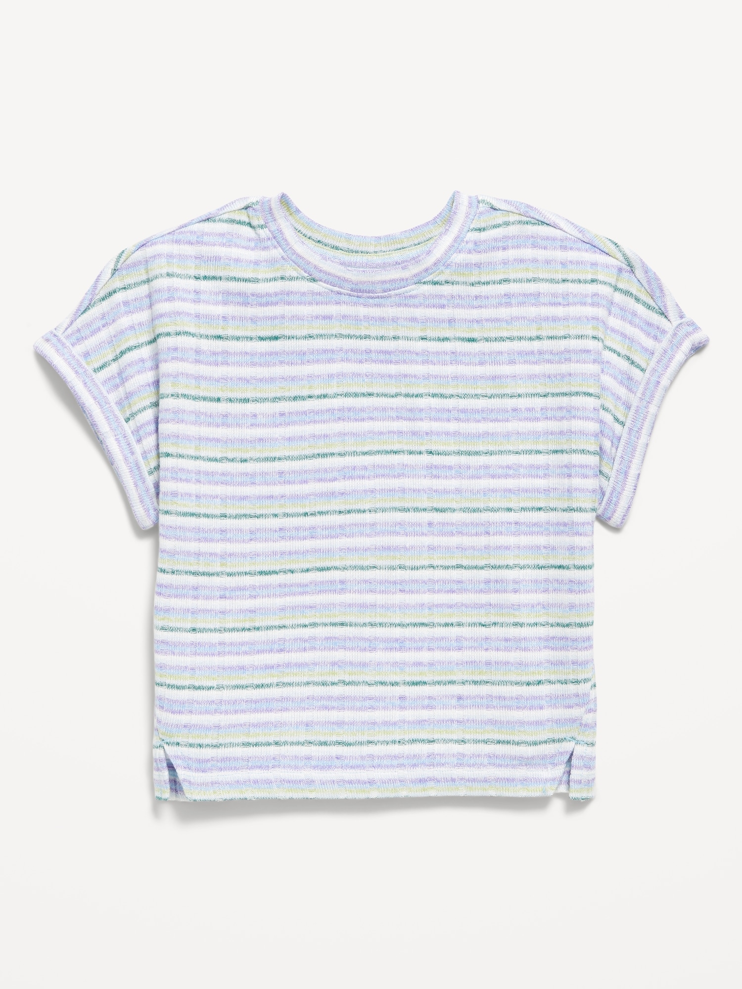 Printed Dolman-Sleeve Rib-Knit T-Shirt for Toddler Girls: crew neck, short rolled dolman sleeves, forward side slits at hem, all-over print, #762285