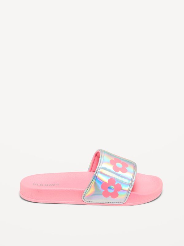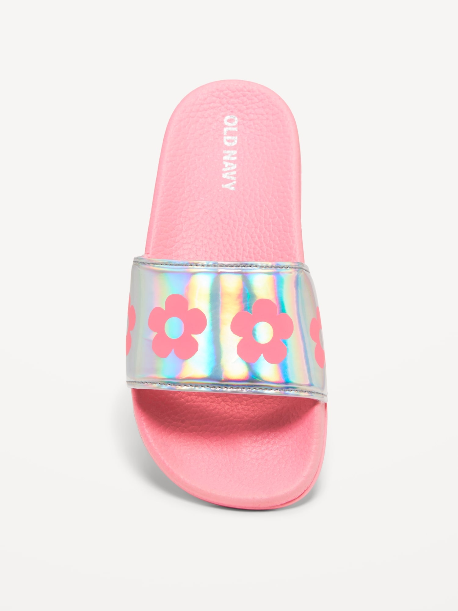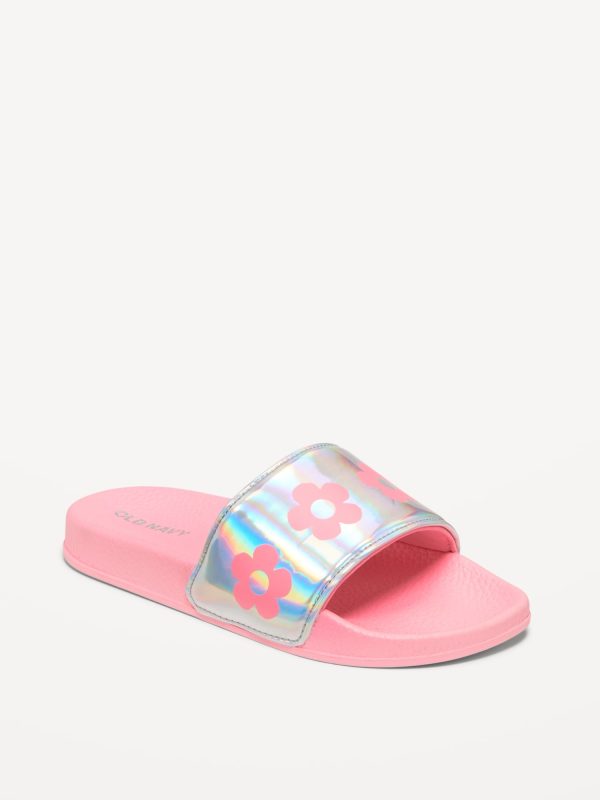 Printed Faux-Leather Pool Slide Sandals for Girls