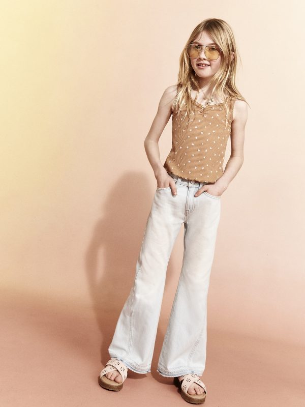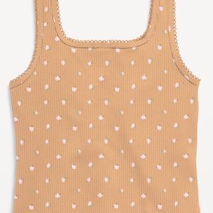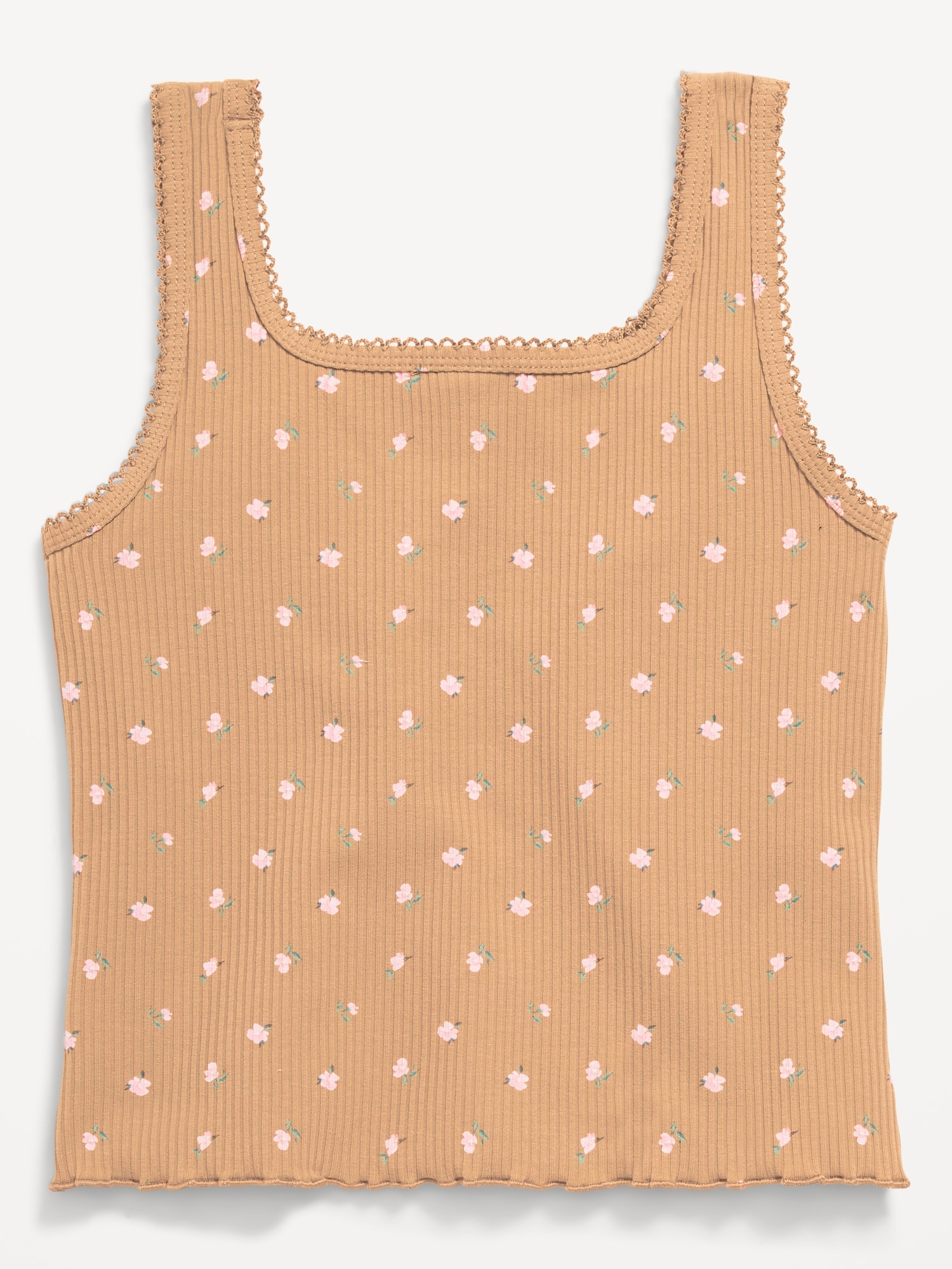 Printed Fitted Ribbed Tank Top for Girls: sweetheart neckline, sleeveless, ruching at chest, lettuce edge hem, all-over print, #708323
