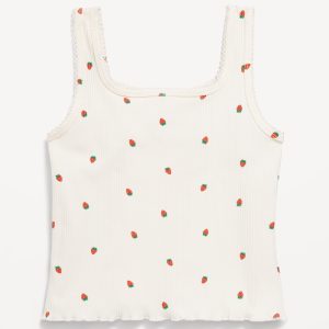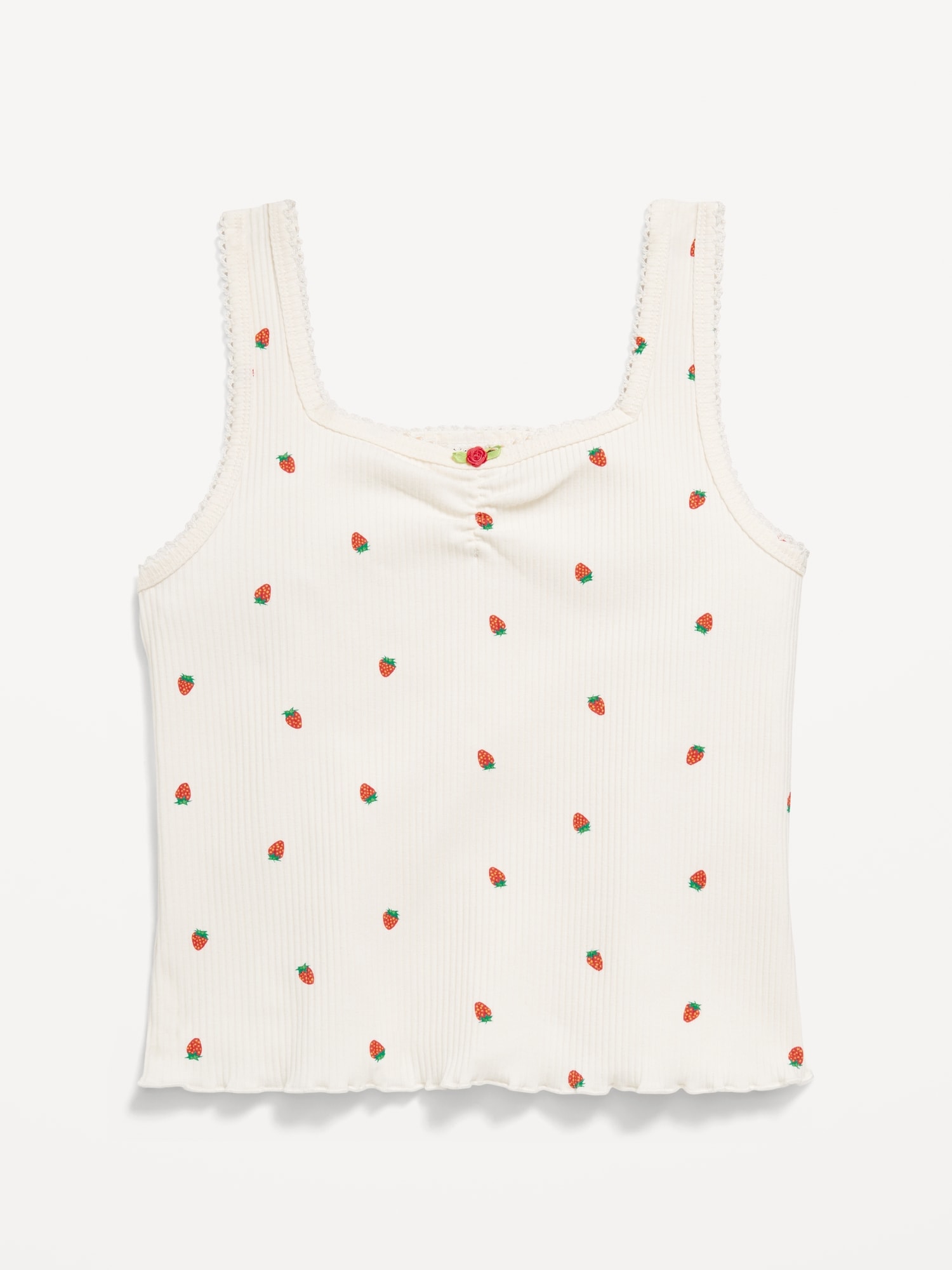 Printed Fitted Tank Top for Girls: sweetheart neckline, sleeveless, ruching at chest, lettuce edge hem, all-over print, #708323
