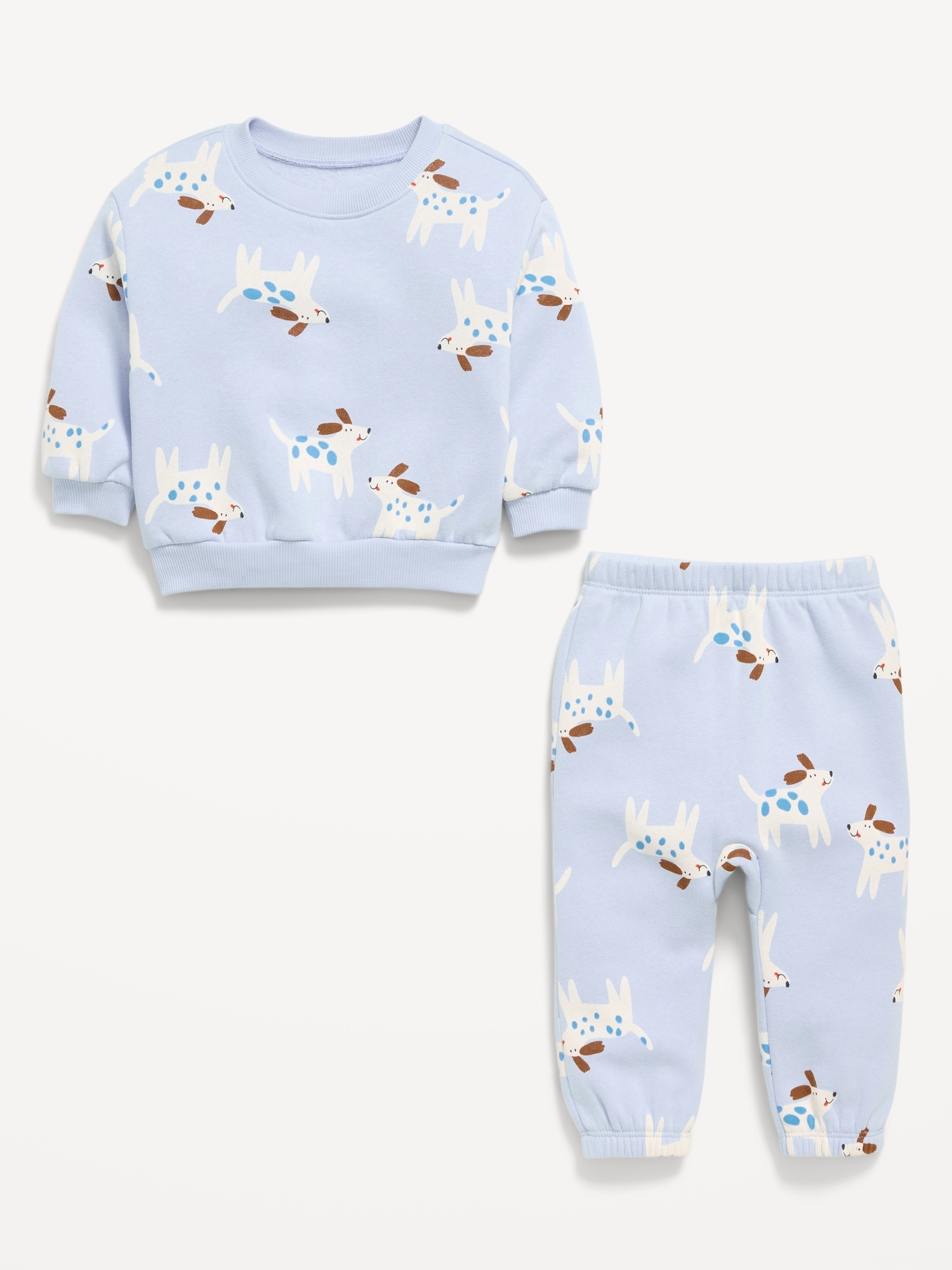 Printed Henley Sweatshirt and Sweatpants Set for Baby: crew neck, long sleeves, two-button henley placket, matching sweatpants, elasticized waistband, patch pocket at back, all-over print, #802716