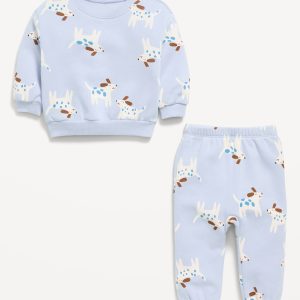 Printed Henley Sweatshirt and Sweatpants Set for Baby: crew neck, long sleeves, two-button henley placket, matching sweatpants, elasticized waistband, patch pocket at back, all-over print, #802716