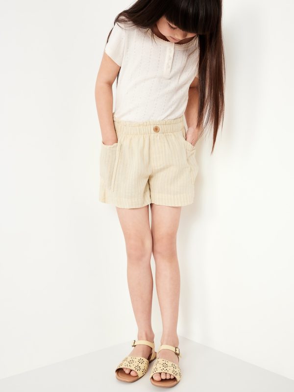 Printed Linen-Blend Utility Shorts for Girls: elasticized waistband, decorative button front, utility patch pockets at each side, all-over print, #767129