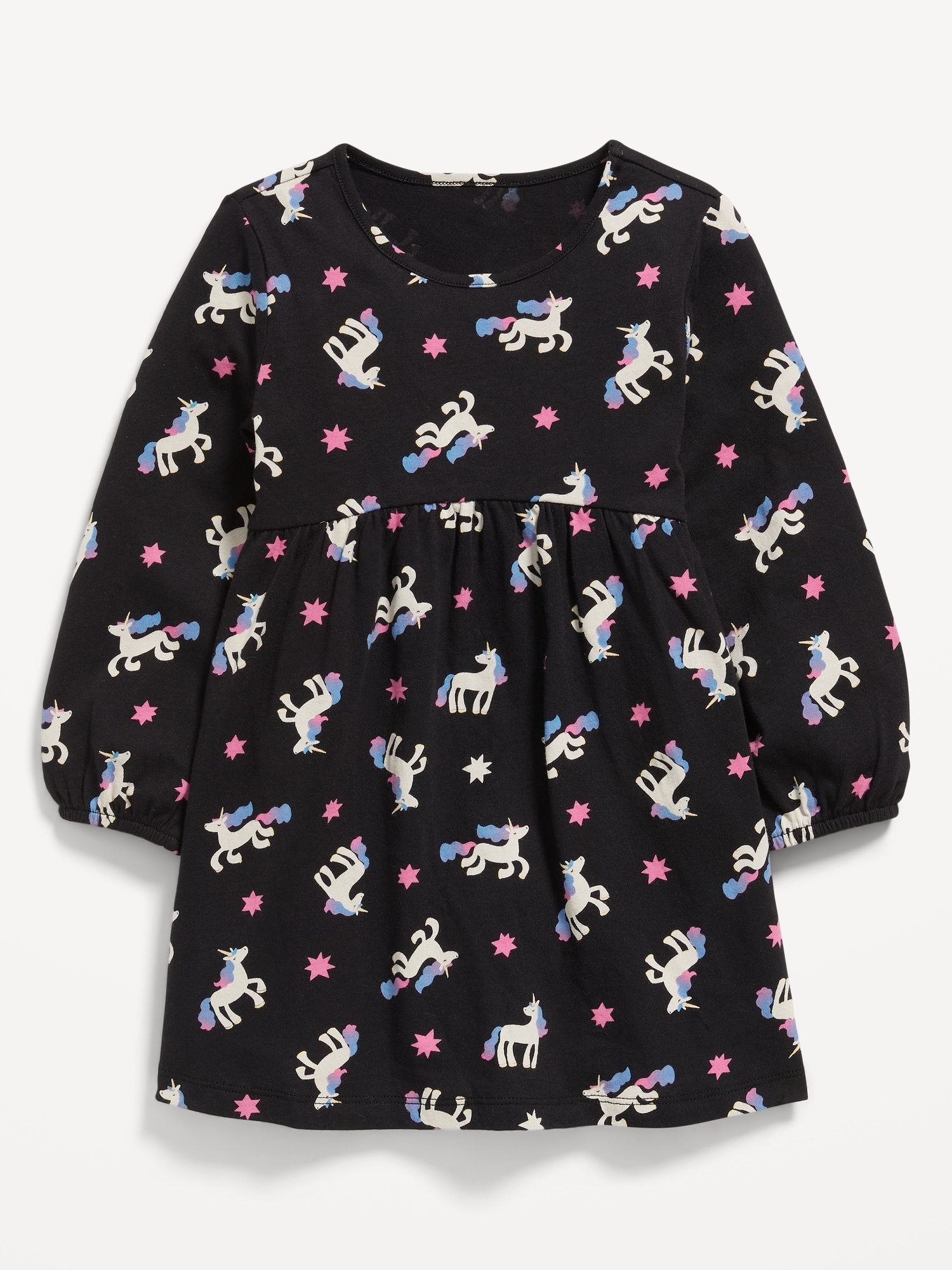 Printed Long-Sleeve Dress for Toddler Girls: Mix Match Go Productscoop neck, long puffy sleeves, seamed waist, all-over print, #805579