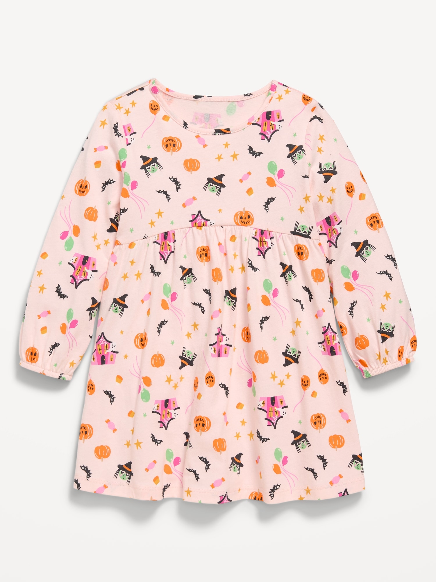 Printed Long-Sleeve Dress for Toddler Girls: Mix Match Go Productscoop neck, long puffy sleeves, seamed waist, all-over print, #805579