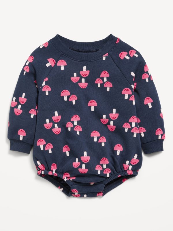 Printed Long-Sleeve Fleece One-Piece Romper for Baby: crew neck, long raglan sleeves, elasticized bubble leg openings, hidden snaps along inseam, all-over print, #802253