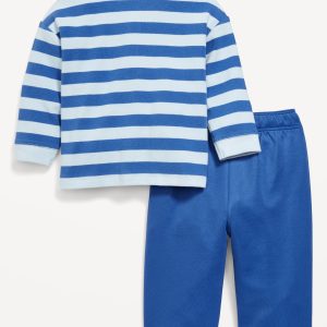 Printed Long-Sleeve Polo Shirt and Pants Set for Baby