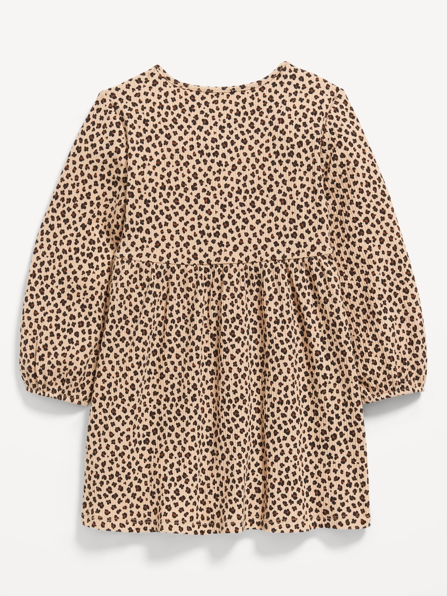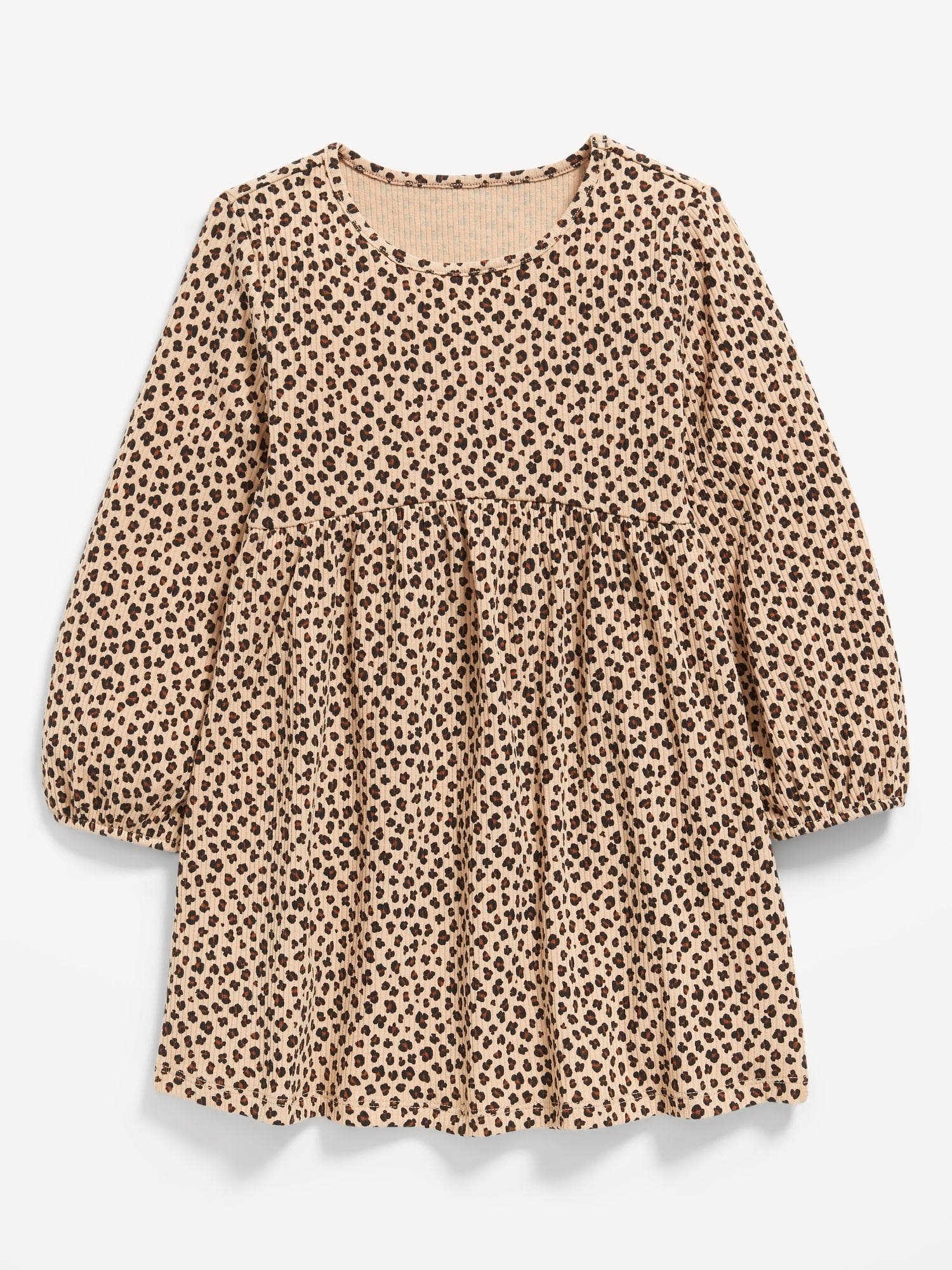Printed Long-Sleeve Ribbed Dress for Toddler Girls: Mix Match Go Productscoop neck, long puffy sleeves, seamed waist, all-over print, #805579