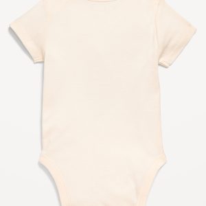 Printed Long-Sleeve Ruffle-Trim One-Piece 2-Pack for Baby: round neckline, keyhole cutout at nape, decorative bow at neck, long sleeves, seamed waist, hidden snaps along inseam, all-over print, #802182