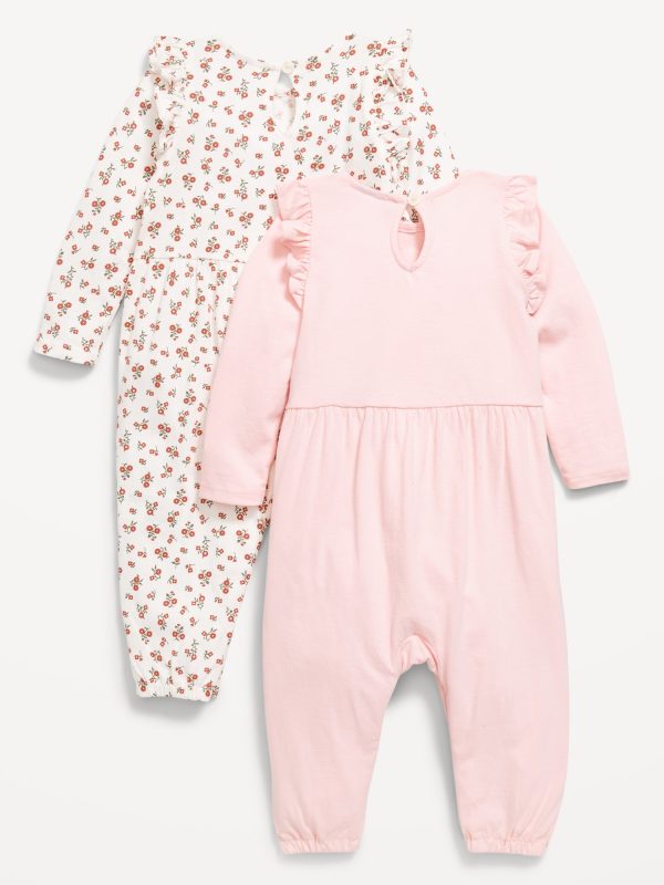 Printed Long-Sleeve Ruffle-Trim One-Piece 2-Pack for Baby