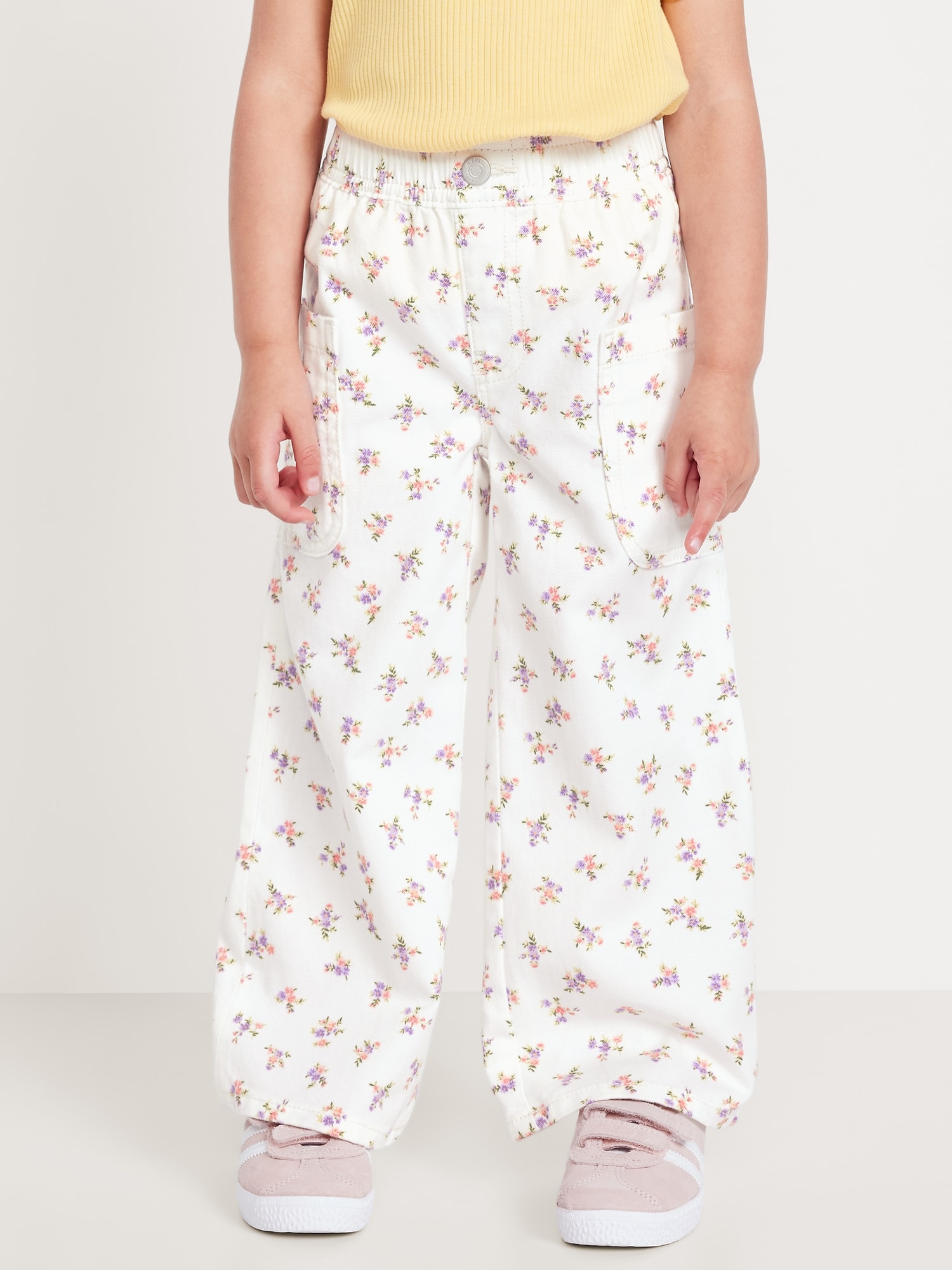 Printed Pull-On Baggy Wide-Leg Cargo Twill for Toddler Girls