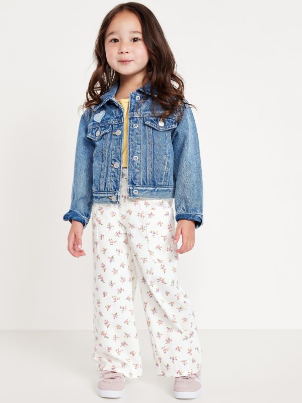Printed Pull-On Baggy Wide-Leg Cargo Twill for Toddler Girls: high rise, elasticized waistband, decorative button closure, faux fly, cargo pockets at hip, all-over print, #762116