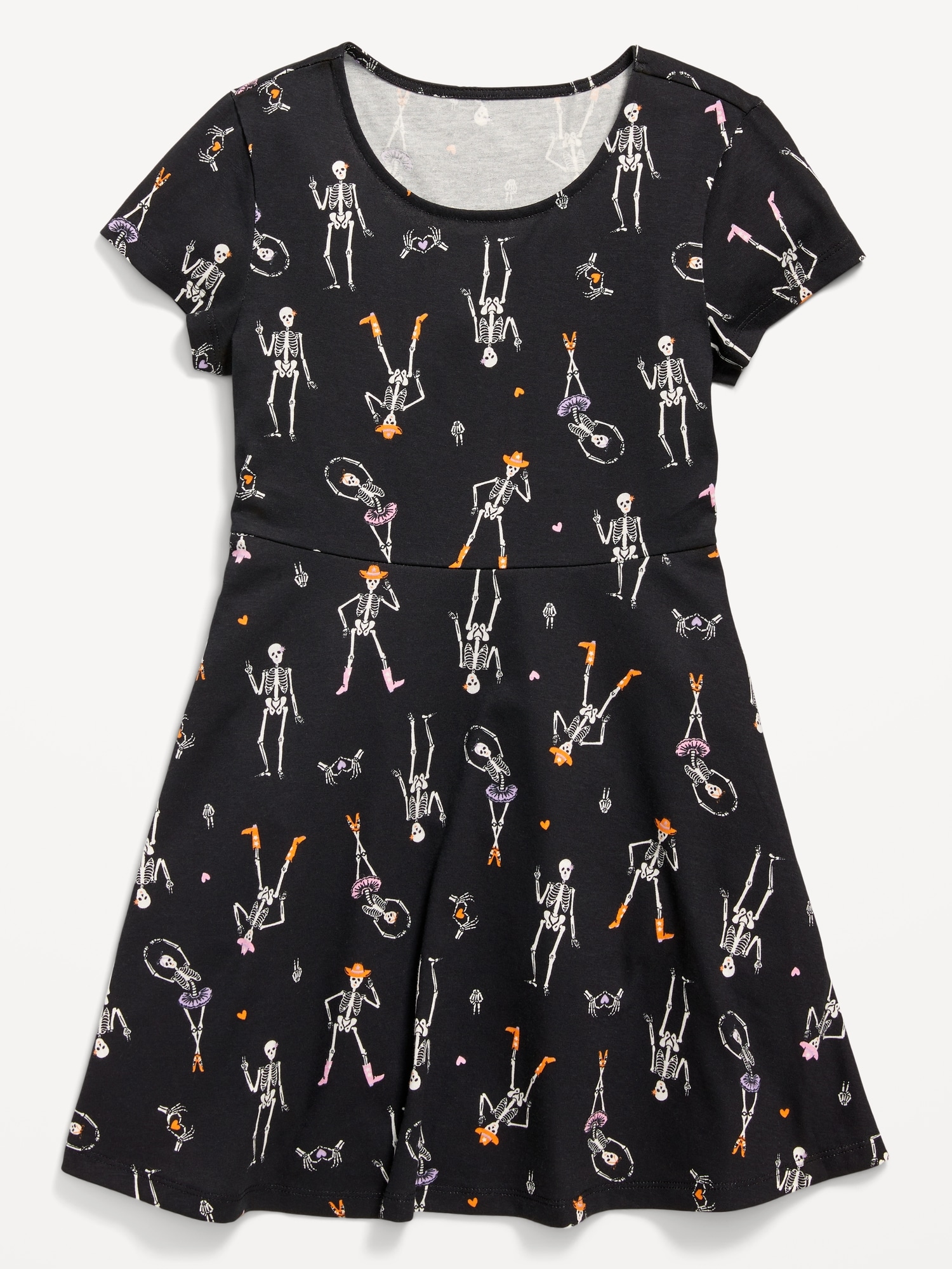 Printed Short-Sleeve Fit and Flare Dress for Girls