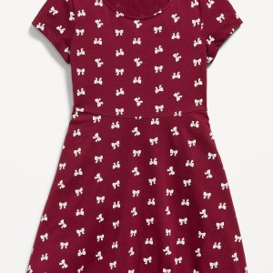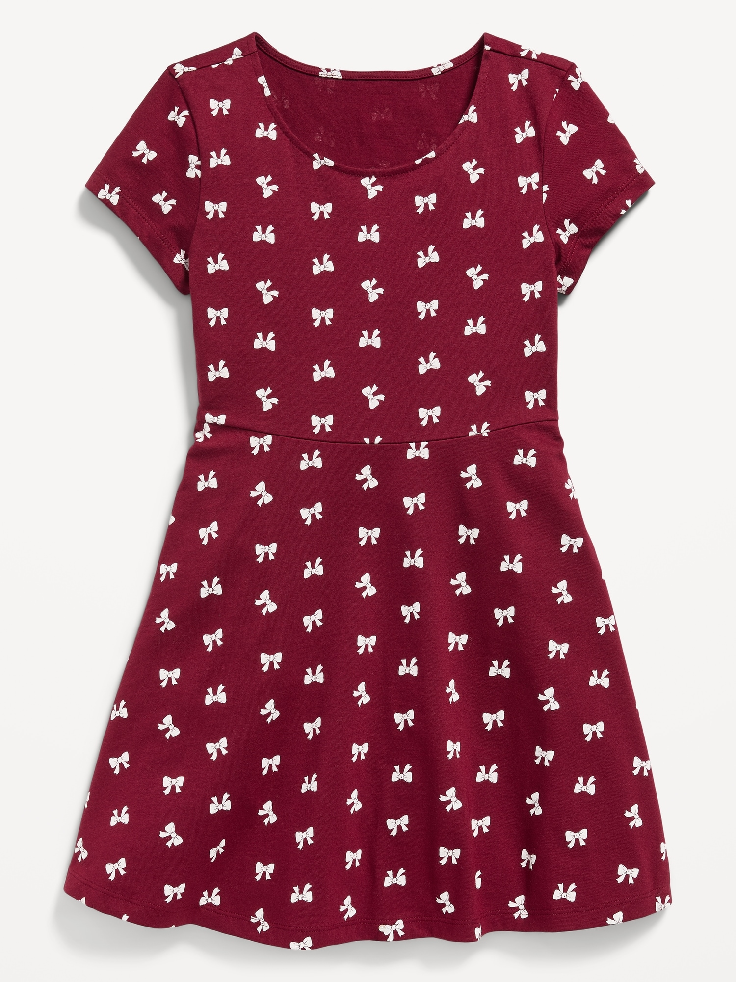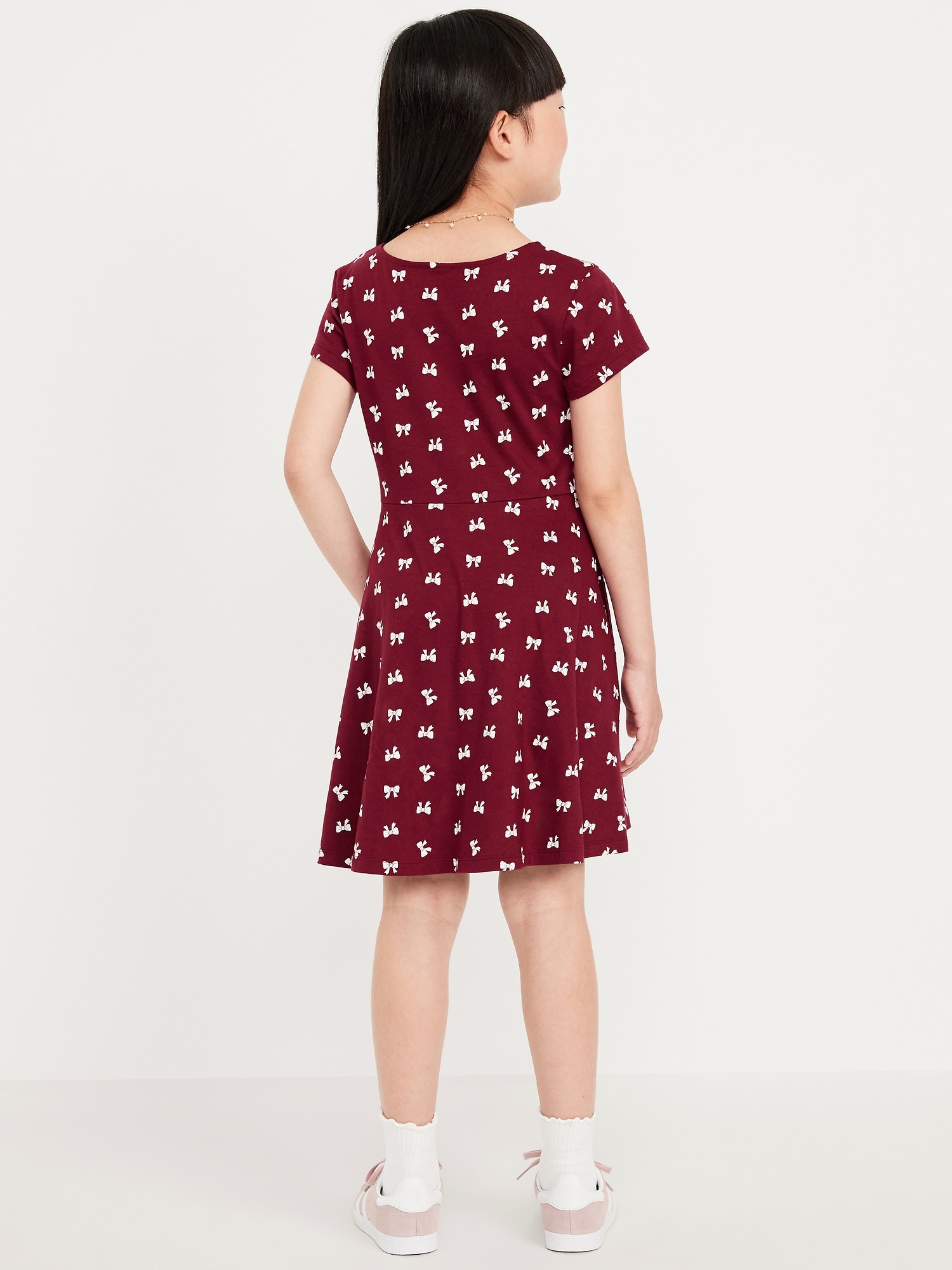 Printed Short-Sleeve Fit and Flare Dress for Girls