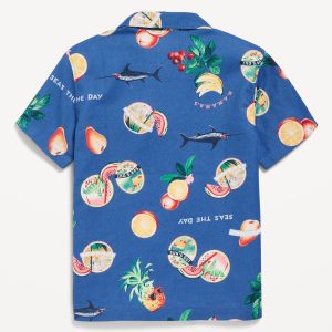 Printed Short-Sleeve Linen-Blend Pocket Shirt for Boys