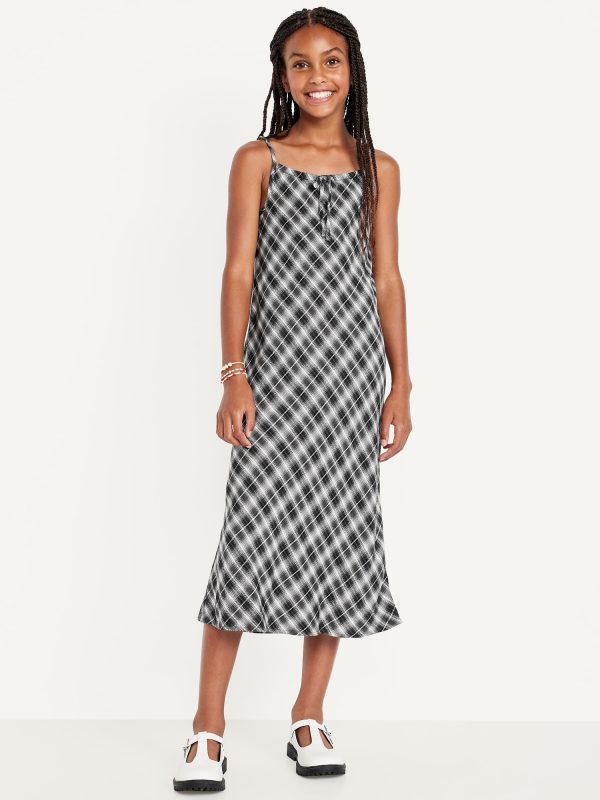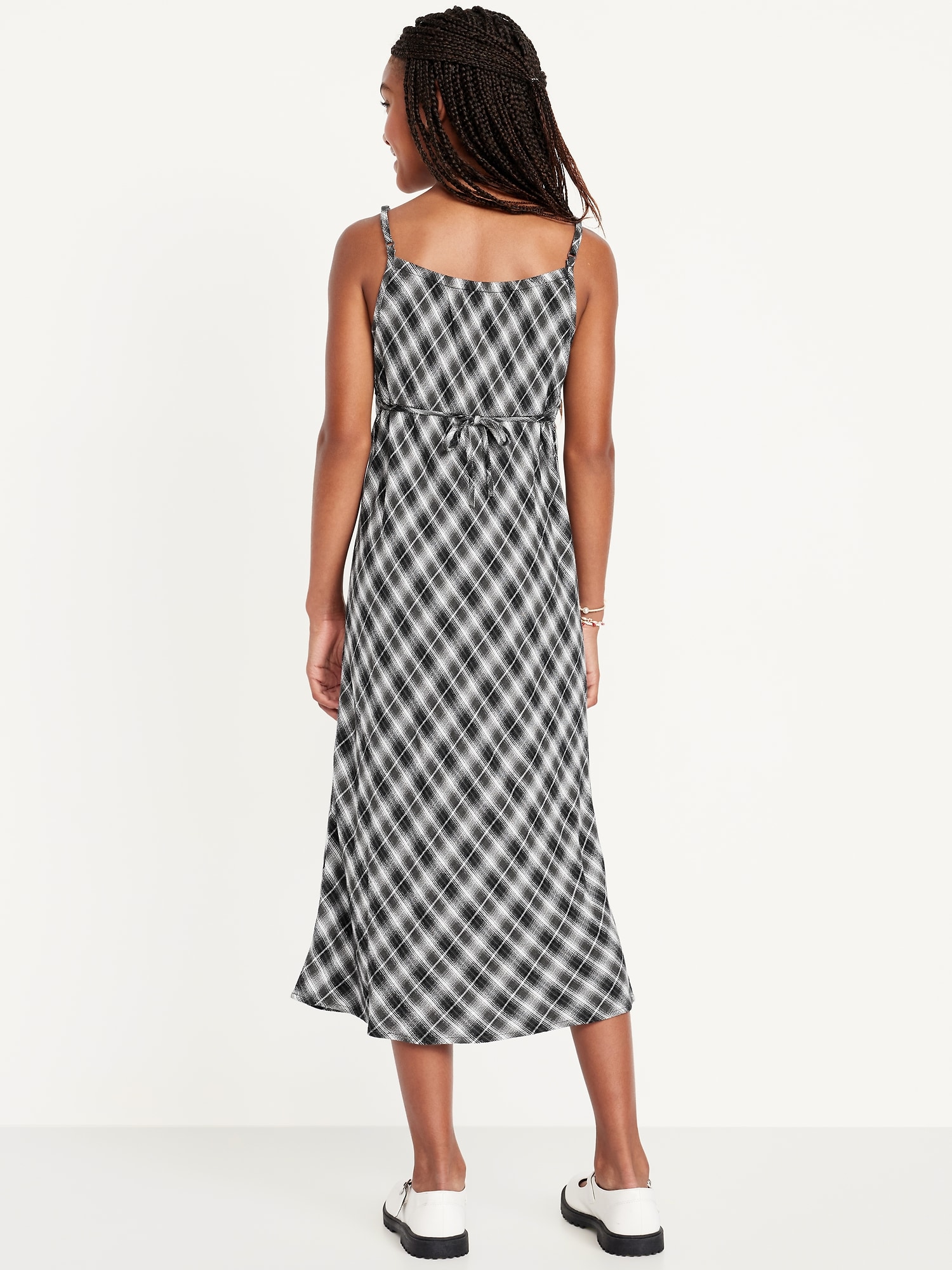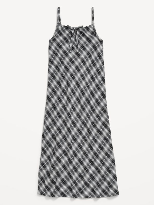 Printed Sleeveless Fit and Flare Maxi Dress for Girls: square neckline, thin adjustable spaghetti straps, decorative bow at neckline, all-over print, #806132
