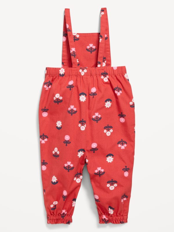 Printed Sleeveless Jumpsuit for Baby: square neckline, thin shoulder straps, diagonal on-seam pockets, hidden snaps along inseam, cinched leg cuffs, embroidered pattern, #802255