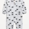 Printed Sleeveless Linen-Blend Henley One-Piece Romper for Baby