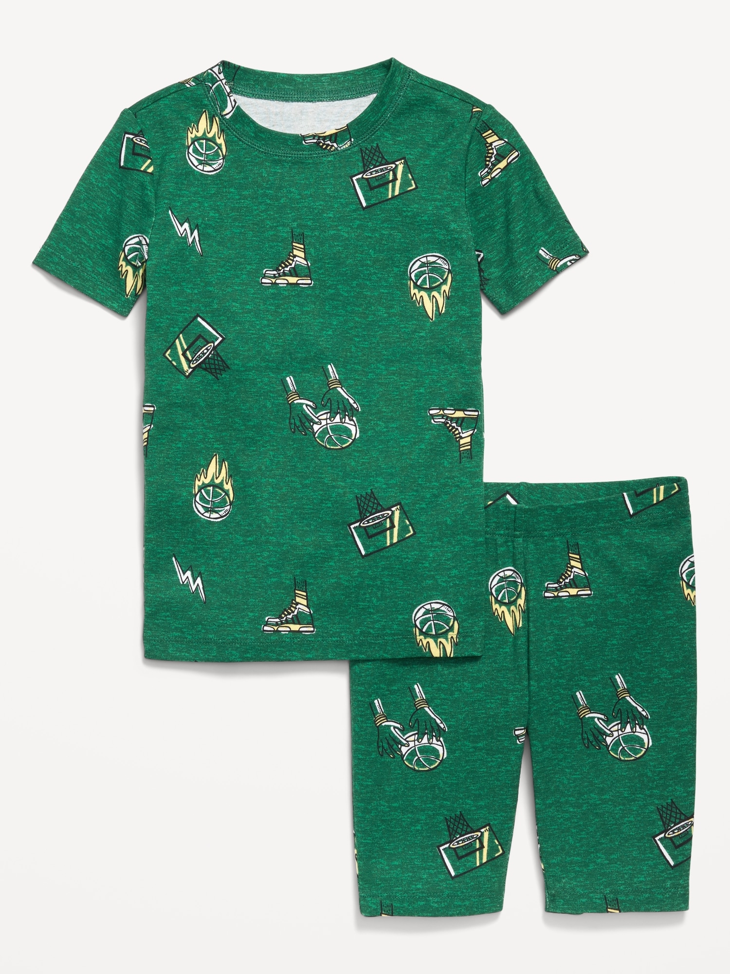 Printed Snug-Fit Pajama Set for Boys: crew neck, short sleeves, matching pajama shorts, elasticized waistband, all-over print, #744977