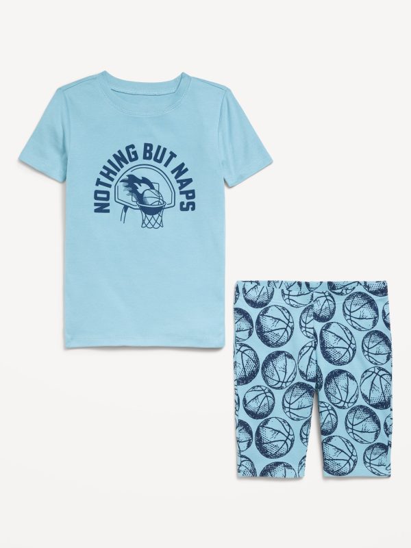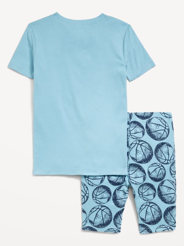 Printed Snug-Fit Pajama Set for Boys: crew neck, short sleeves, matching pajama shorts, elasticized waistband, all-over print, #744977