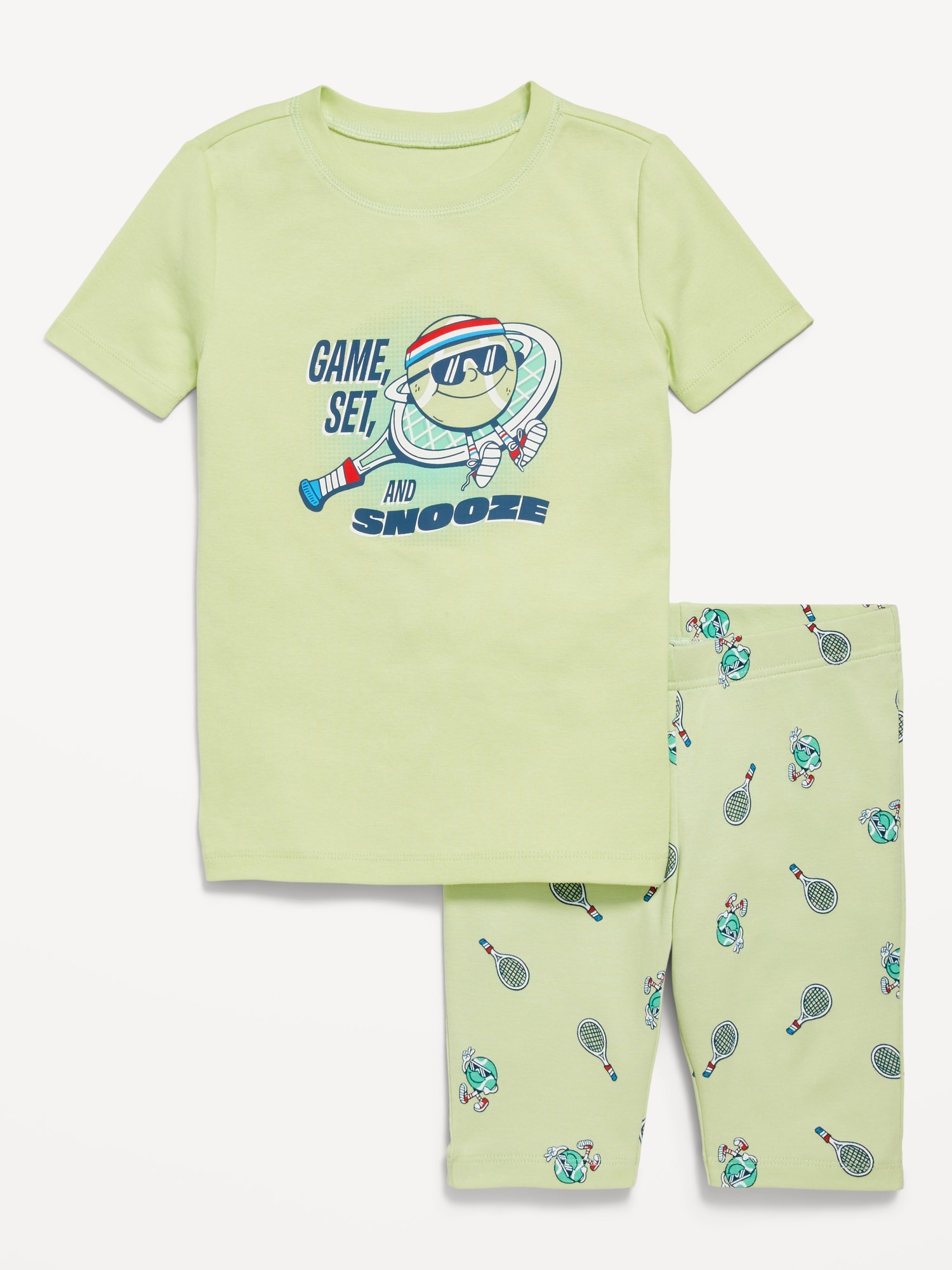 Printed Snug-Fit Pajama Set for Boys: crew neck, short sleeves, matching pajama shorts, elasticized waistband, all-over print, #744977