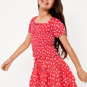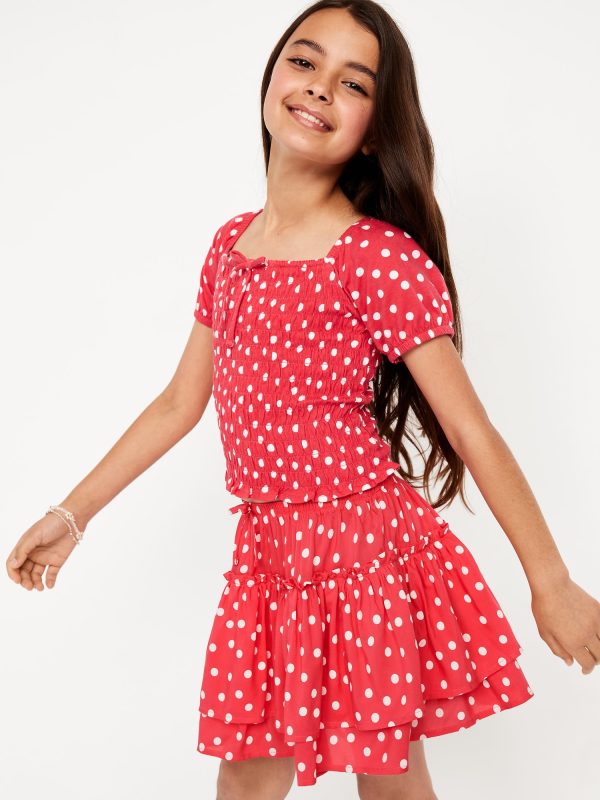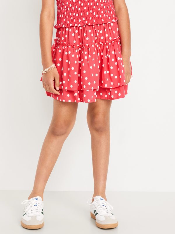 Printed Tiered Ruffled Skirt for Girls: elasticized waistband, decorative bow, ruffled trim, tiered, all-over print, #766620