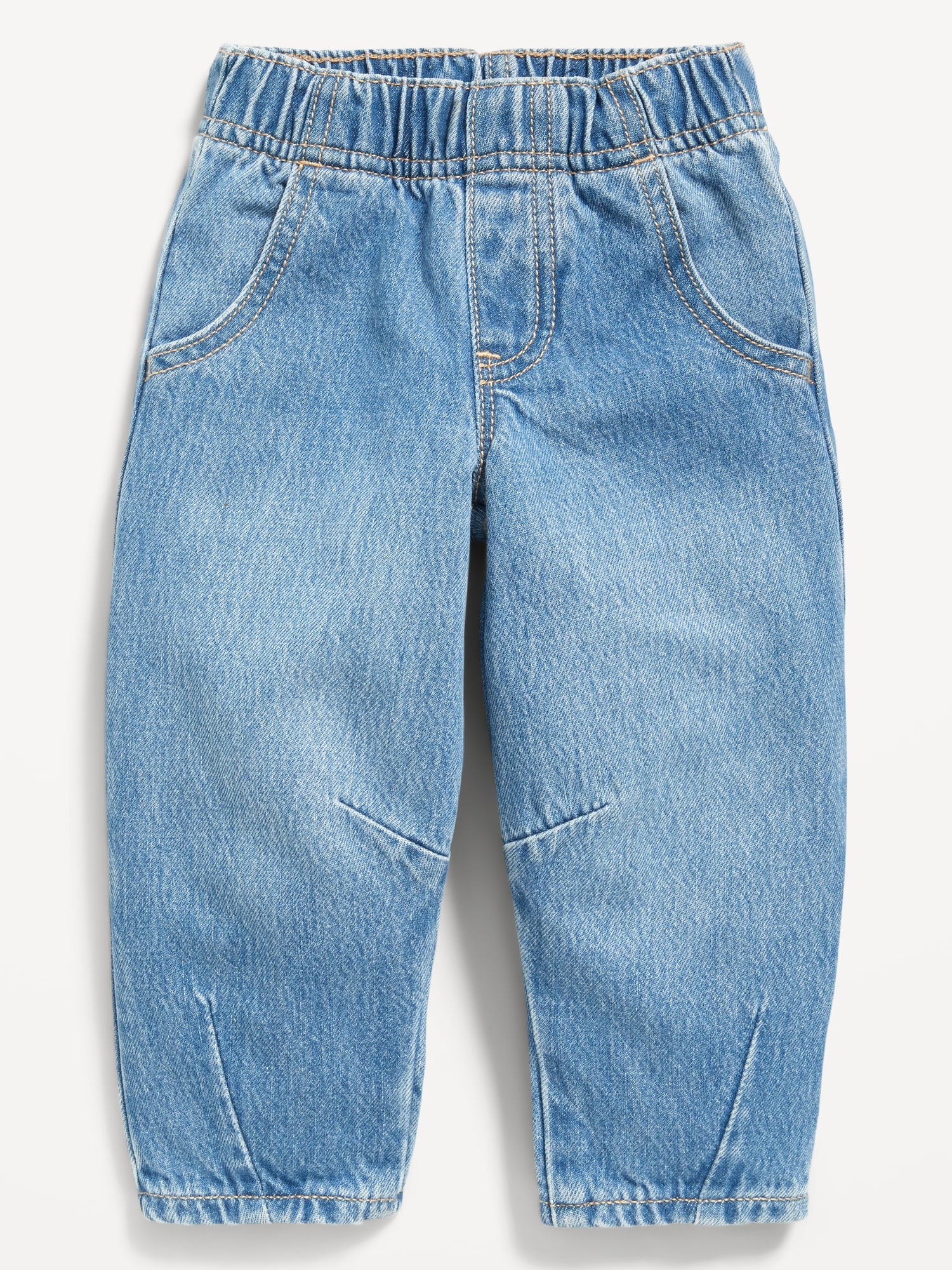 Pull-On Baggy Barrel-Leg Jeans for Toddler Girls: high rise, elasticized waistband, faux fly, scoop pockets, patch pockets at back, barrel leg, online exclusive, #804750