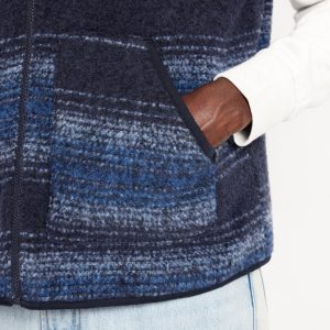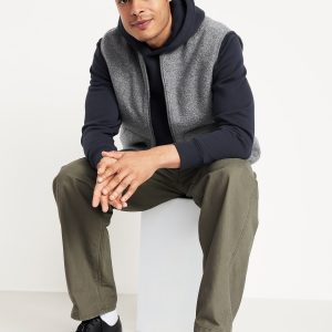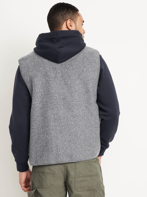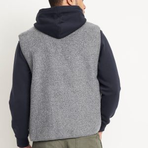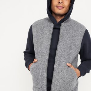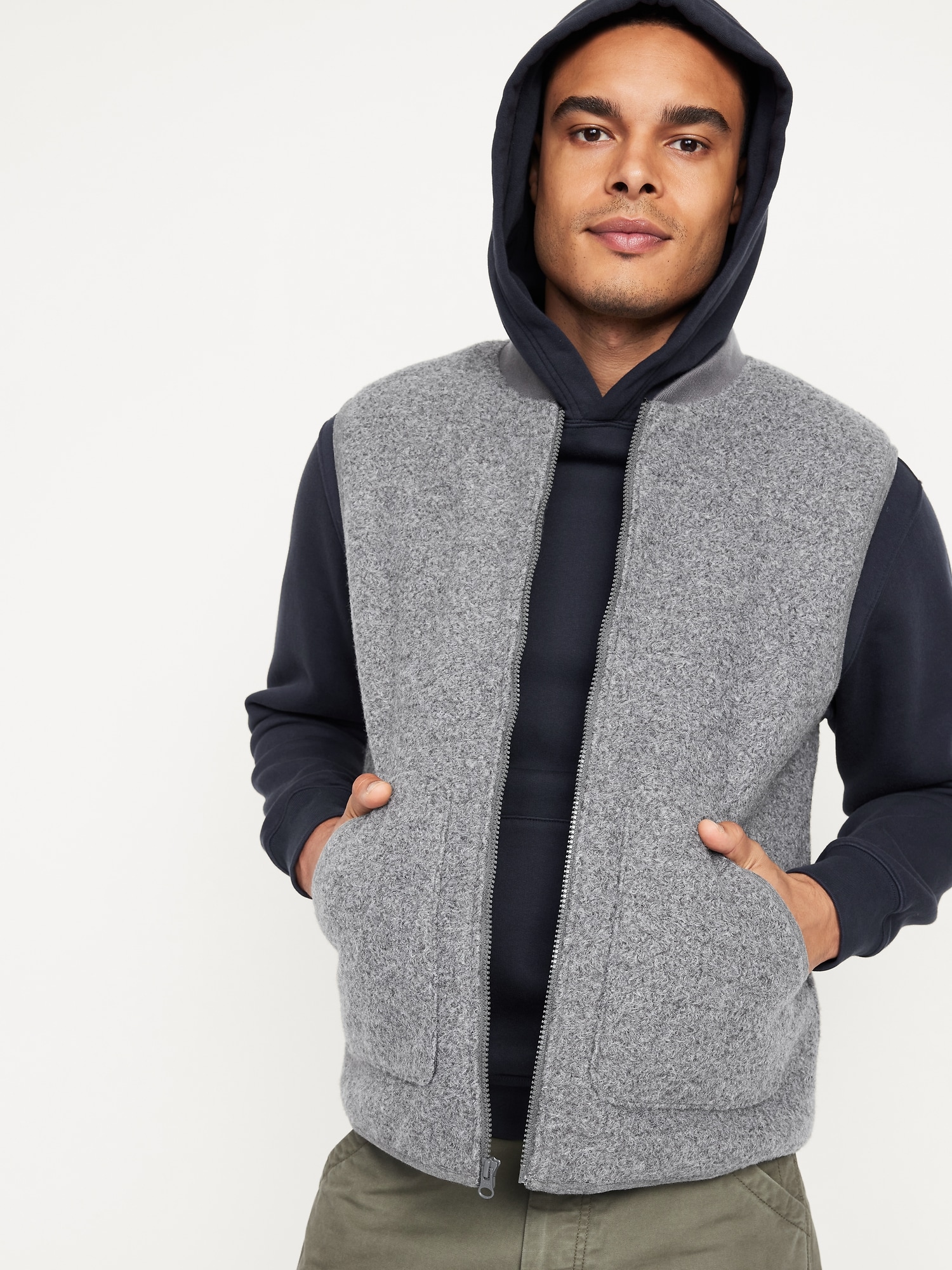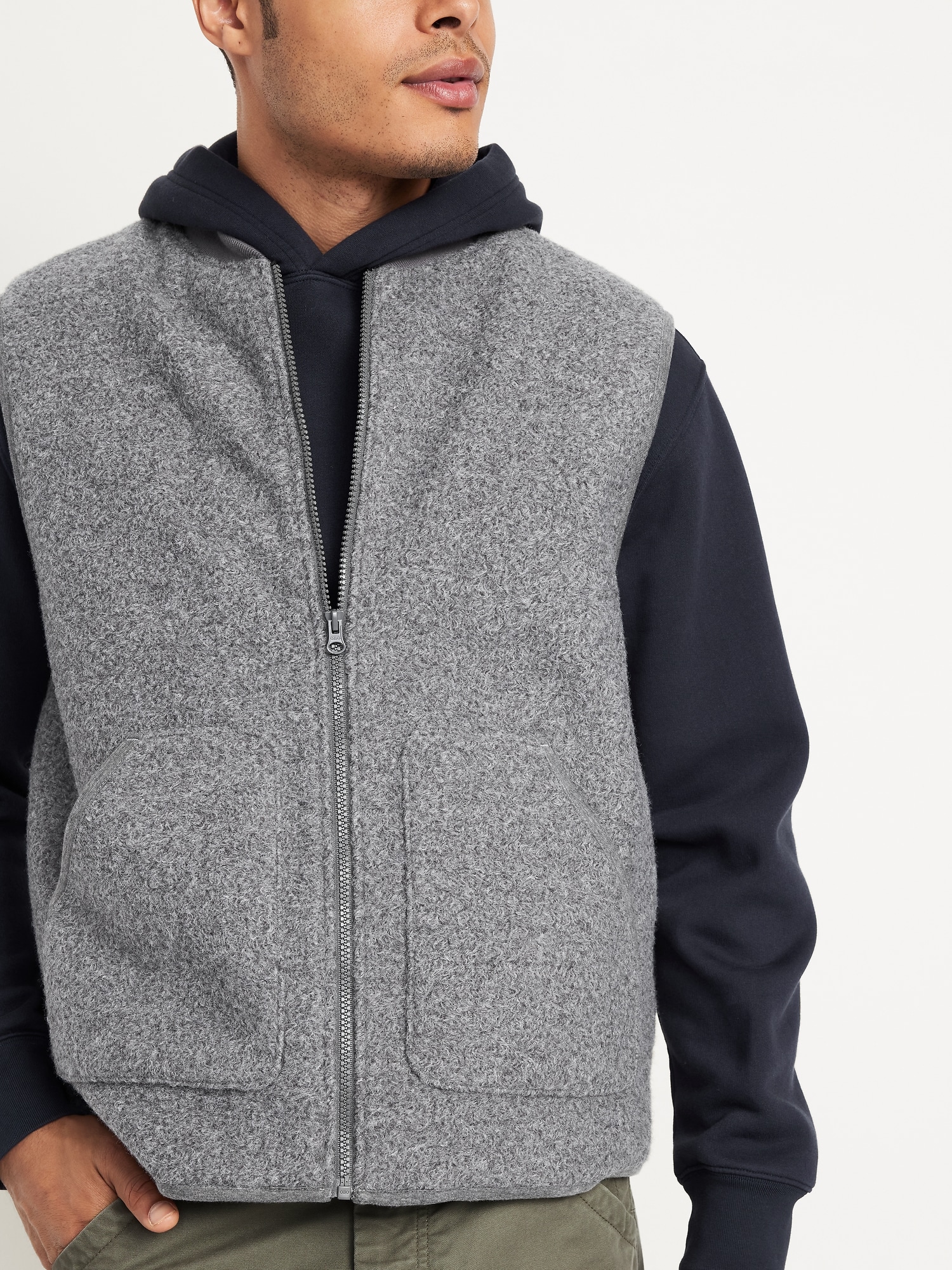 Relaxed Boiled Wool Vest: rib-knit bomber collar, front patch pockets, full-zip front, hanging loop, #800312