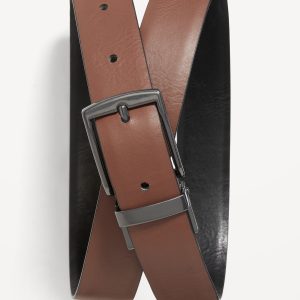 Reversible Belt for Boys: Reversible faux-leather belt is black on one side and dark brown on the other., Metal buckle., #621665