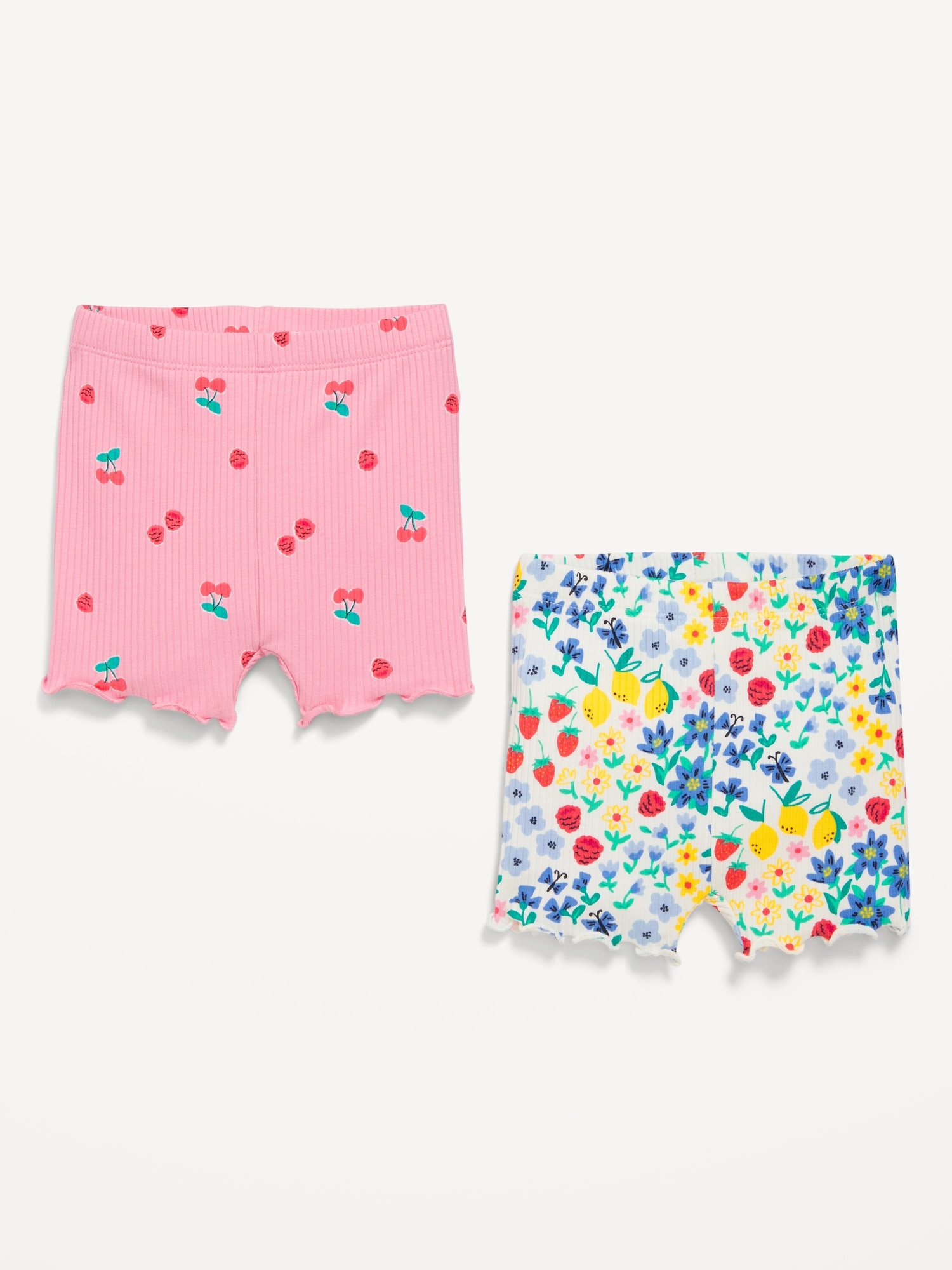 Rib-Knit Biker Shorts 2-Pack for Baby: elasticized waistband, lettuce edge cuffs, #687919