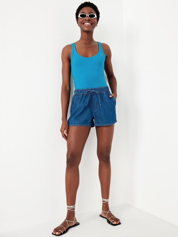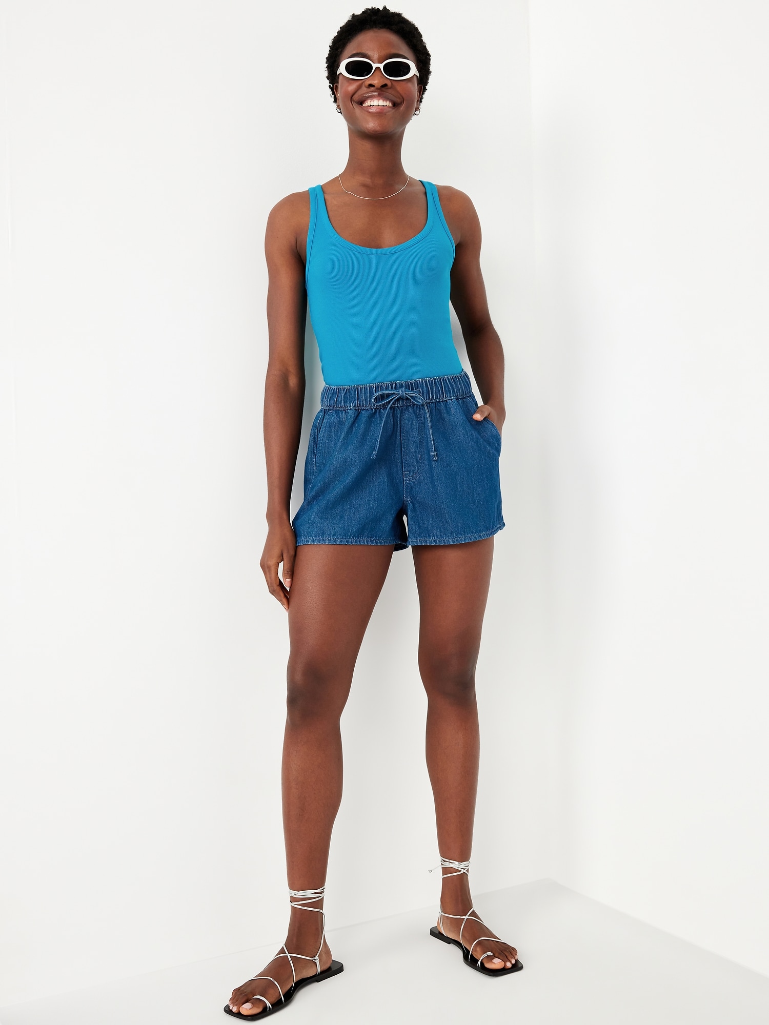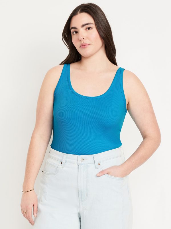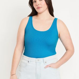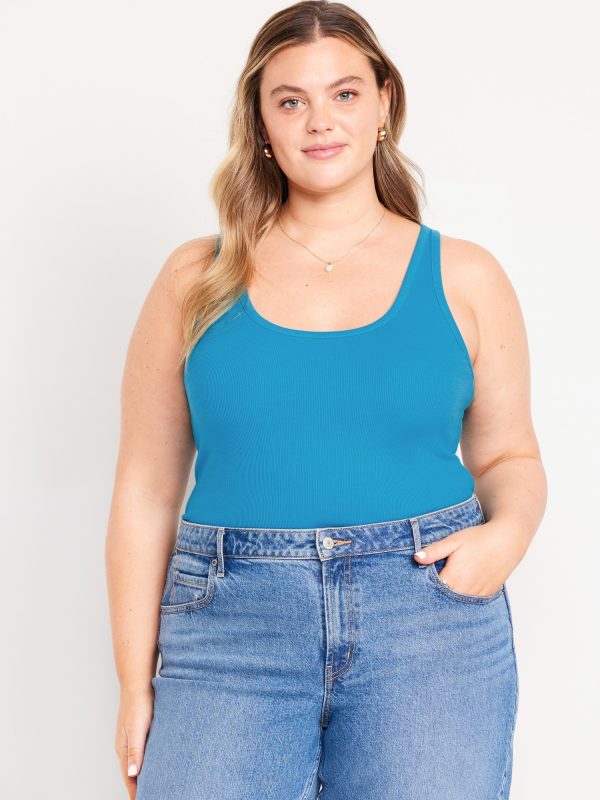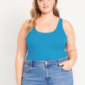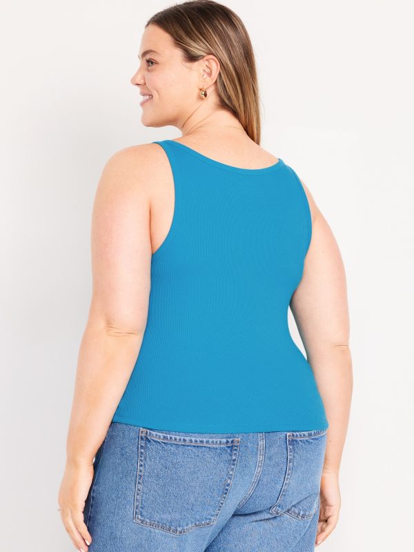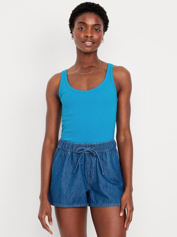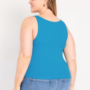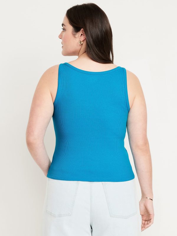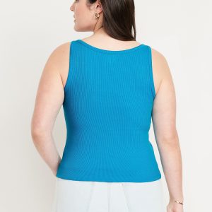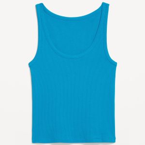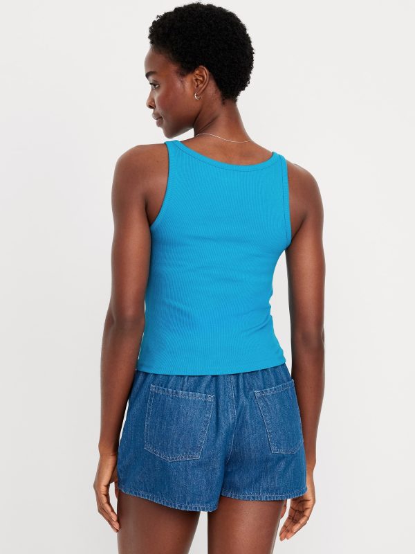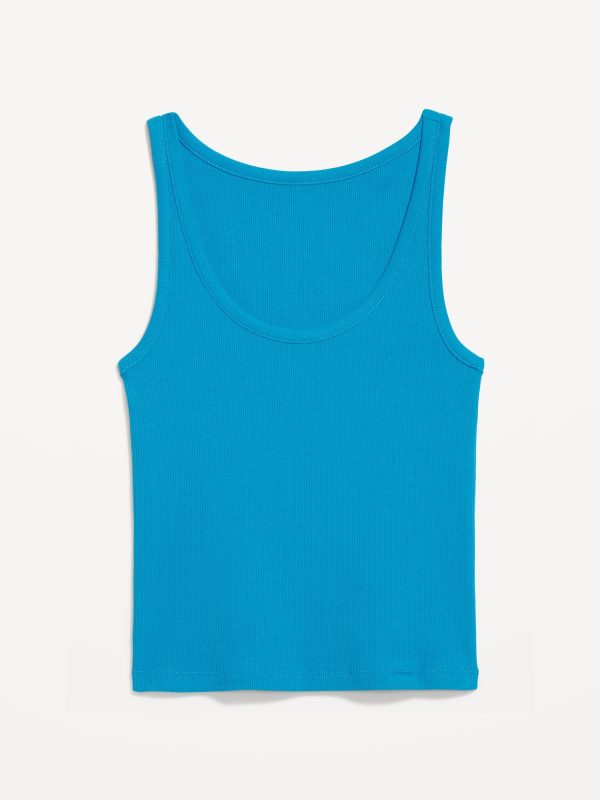 Ribbed Crop Tank Top: scoop neck, wide straps, embroidered trim, #693036