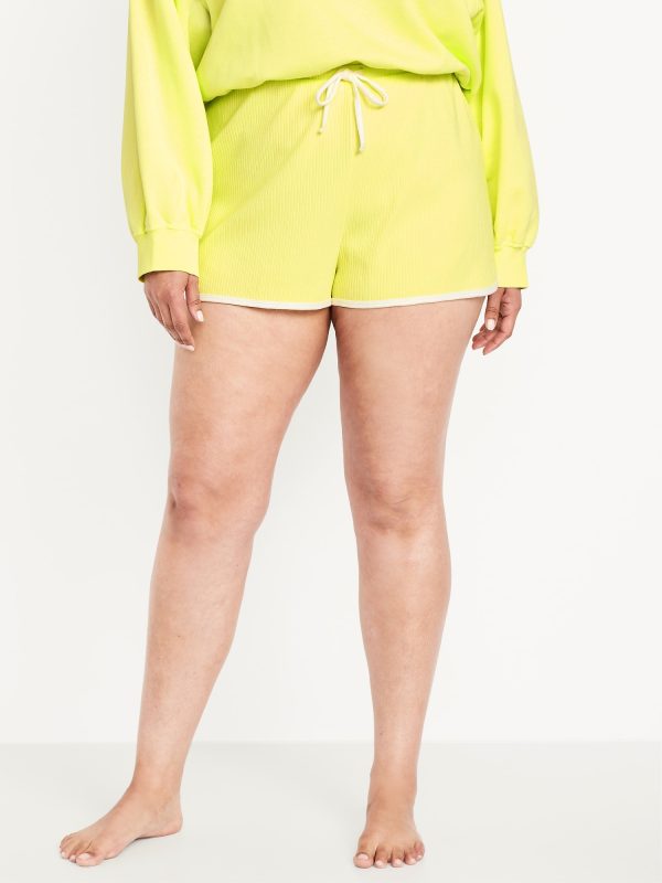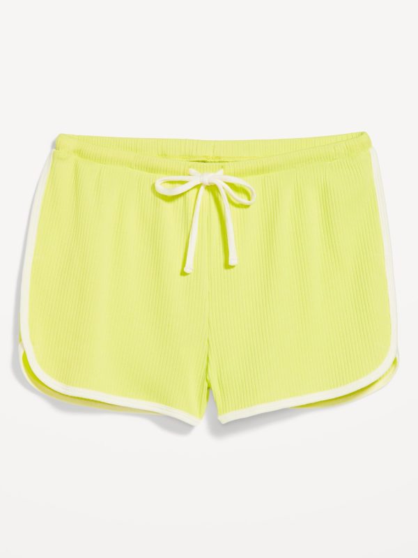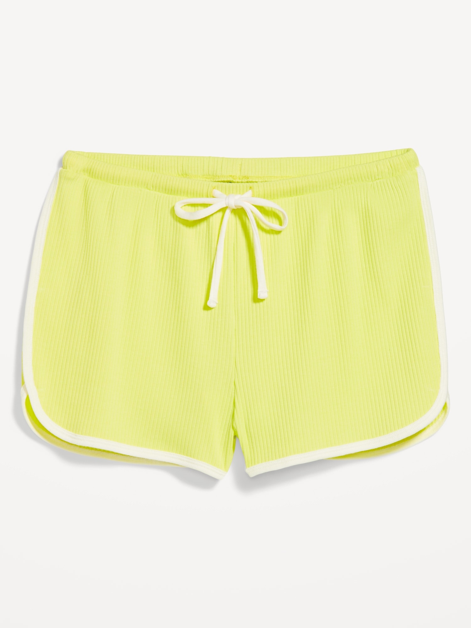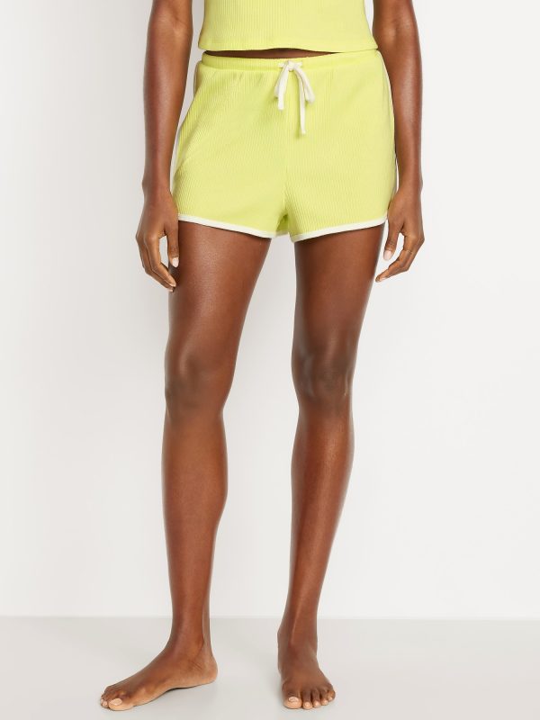 Ribbed Pajama Shorts: elastic-drawstring waistband, dolphin hem, pull-on style, prints vary, #766782