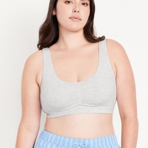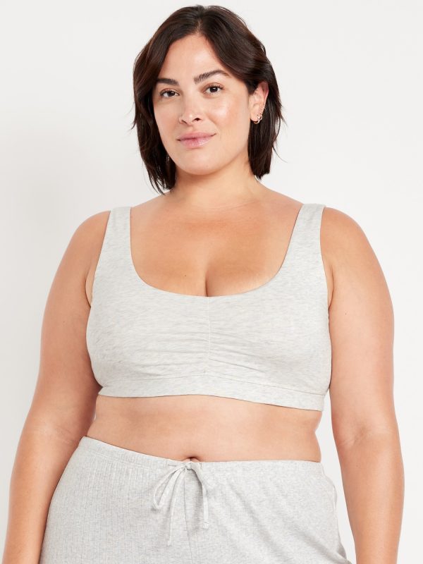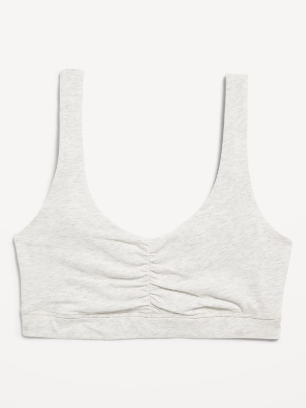 Ruched Cotton Bralette: v-neck, wide straps, front ruching, elastic hem, #800554