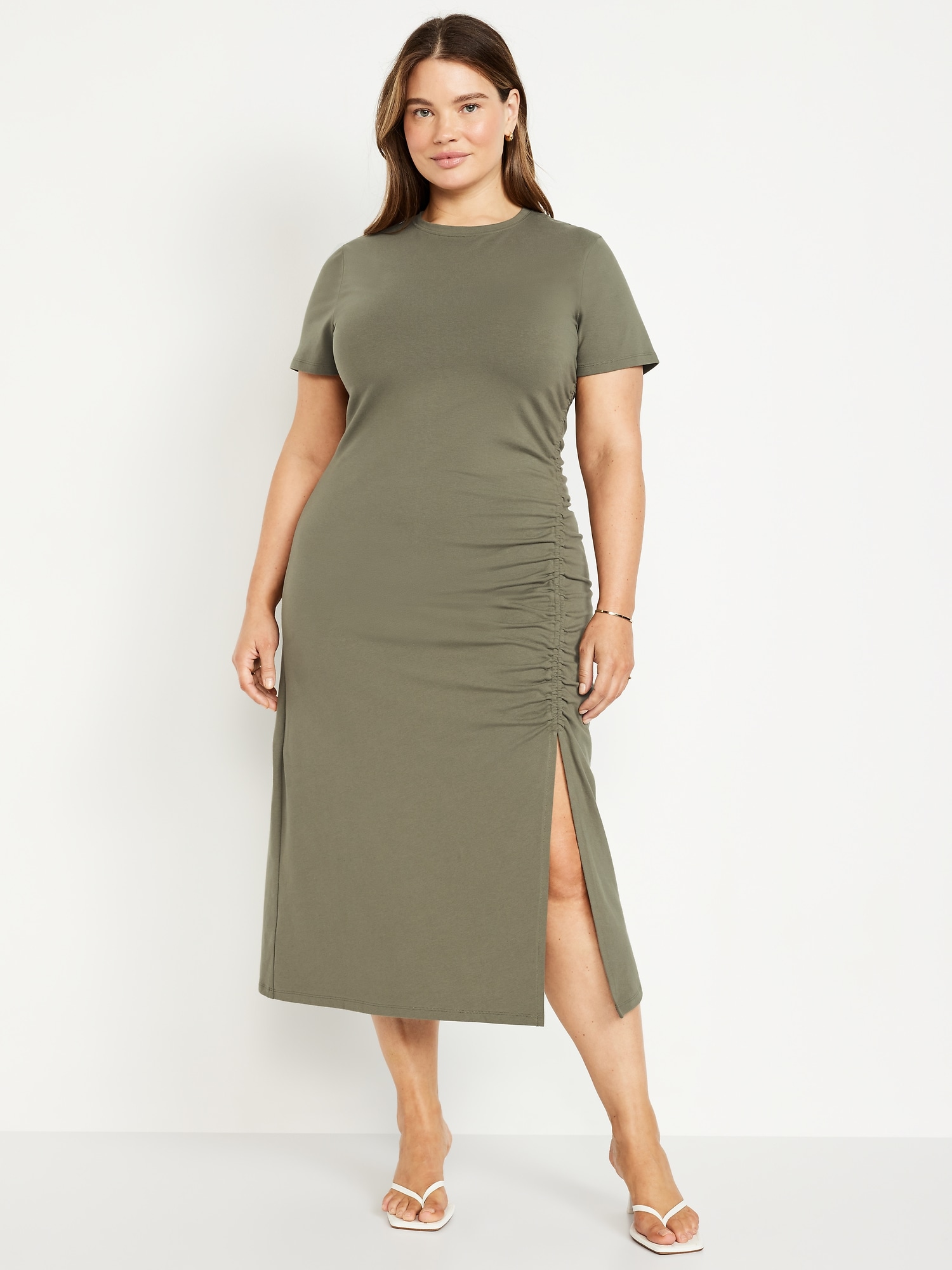 Ruched Midi T-Shirt Dress