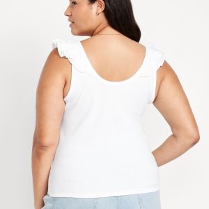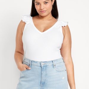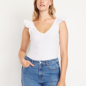Ruffle-Trim Mixed Material Top