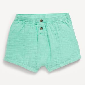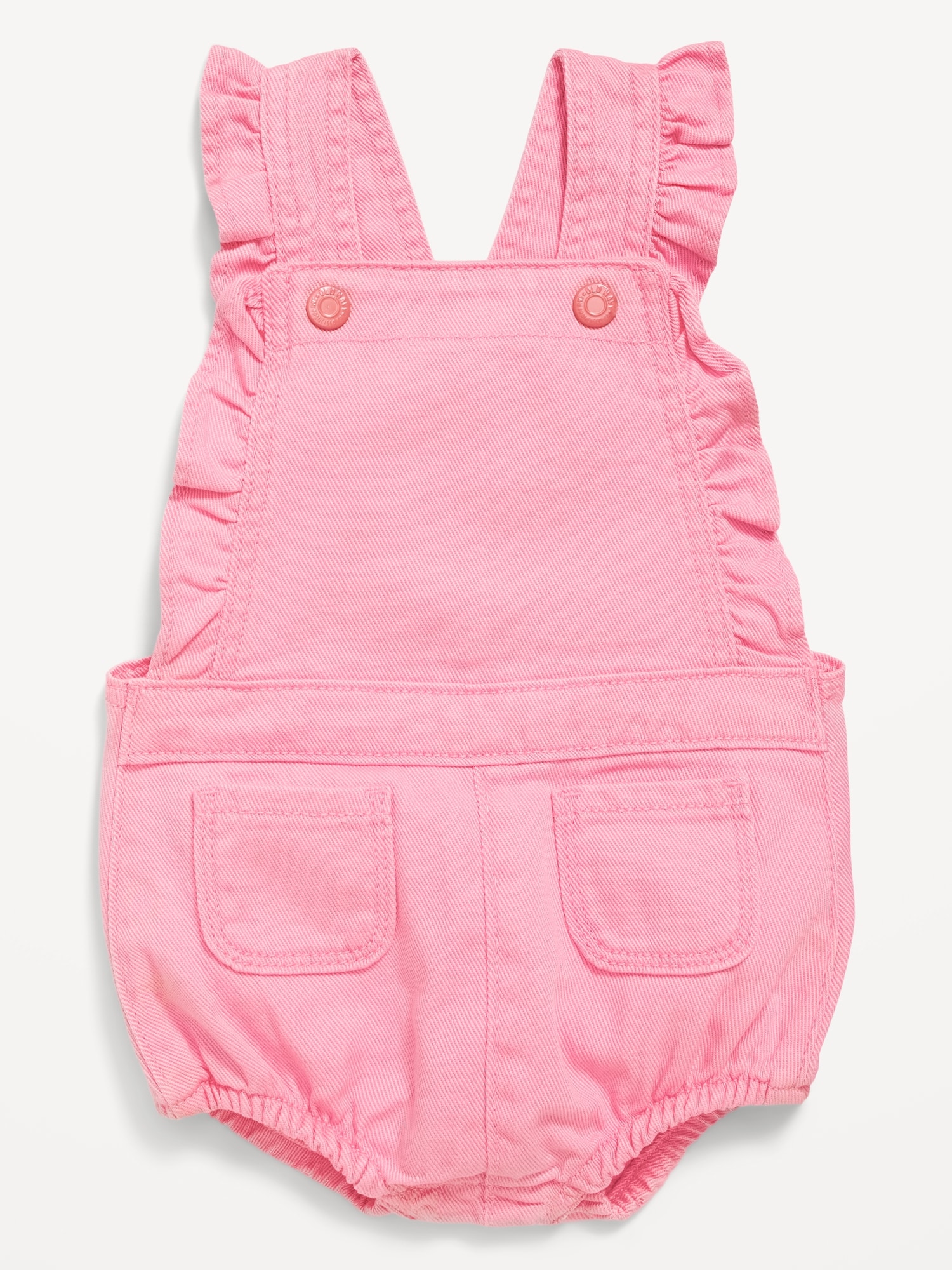 Ruffle-Trim Twill Pocket Shortalls for Baby