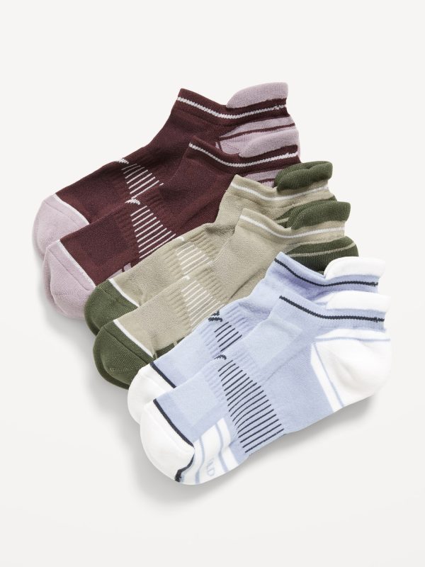 Running Ankle Socks 3-Pack for Women: pack includes 3 pairs of running ankle socks, no-slip heel designed for running, arch support, zoned cushioning, notched toe seams for comfort, go-dry keeps you cool, #772118