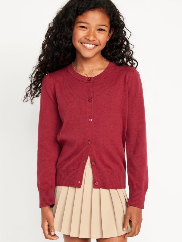 School Uniform Button-Up Cardigan for Girls: Uniform Guarantee: Uniforms may be returned for a full refund with the original receipt for 365 days from the date of purchase.crew neck, long sleeves, full length button front, online exclusive, #419756