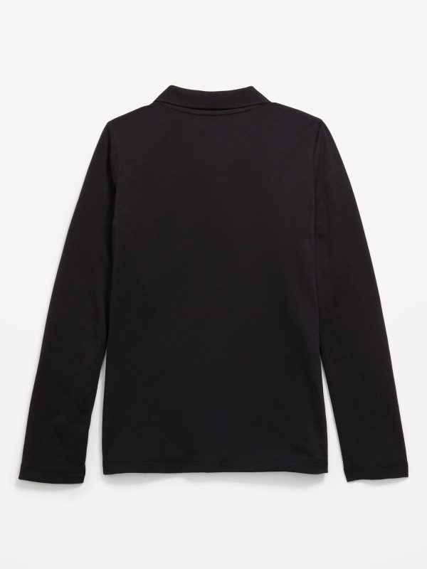 School Uniform Jersey-Knit Polo Shirt for Girls: rib-knit spread collar, long sleeves, three-button placket, vented sides at hem, online exclusive, #766951