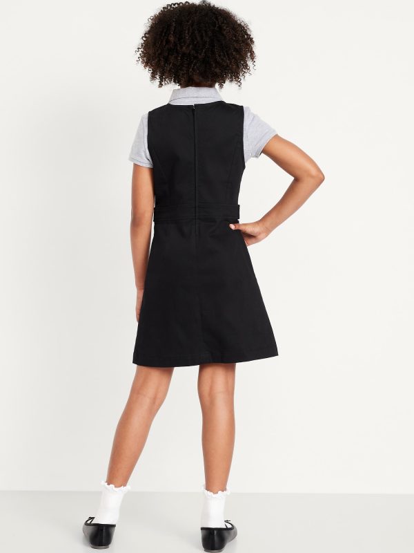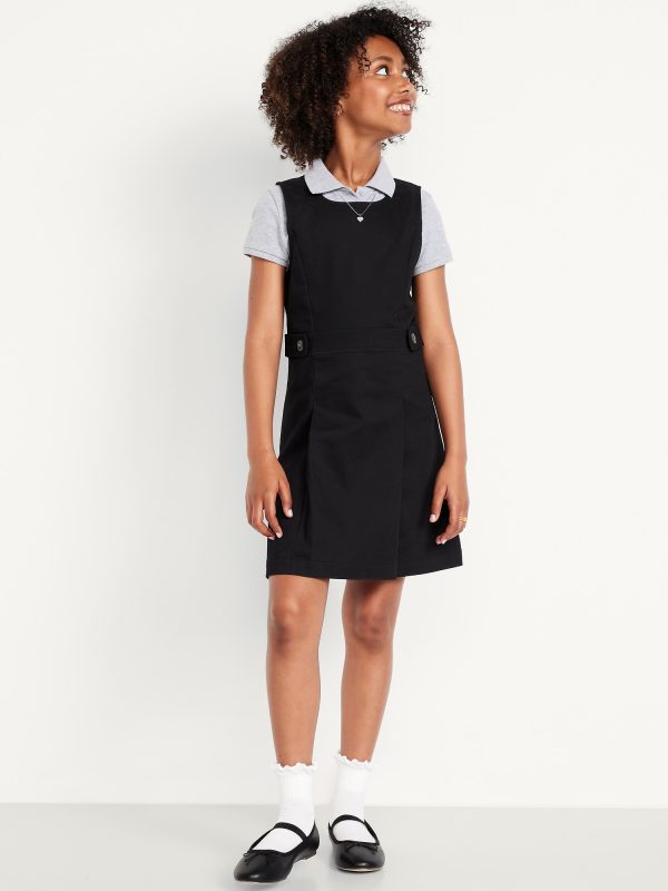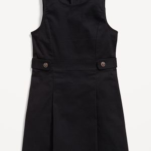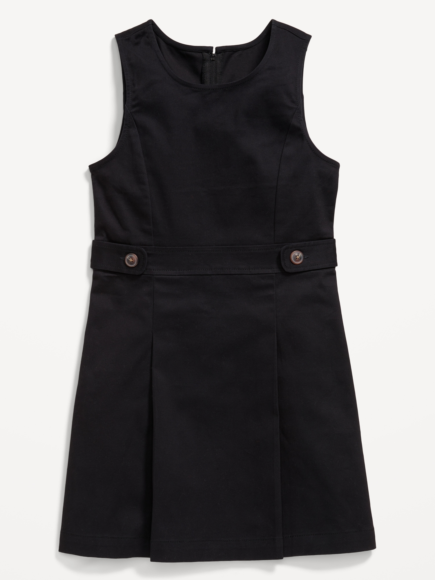 School Uniform Sleeveless Pleated Dress for Girls: scoop neck, sleeveless, full length zipper at back, decorative button tabs at waist, pleated skirt, #766641